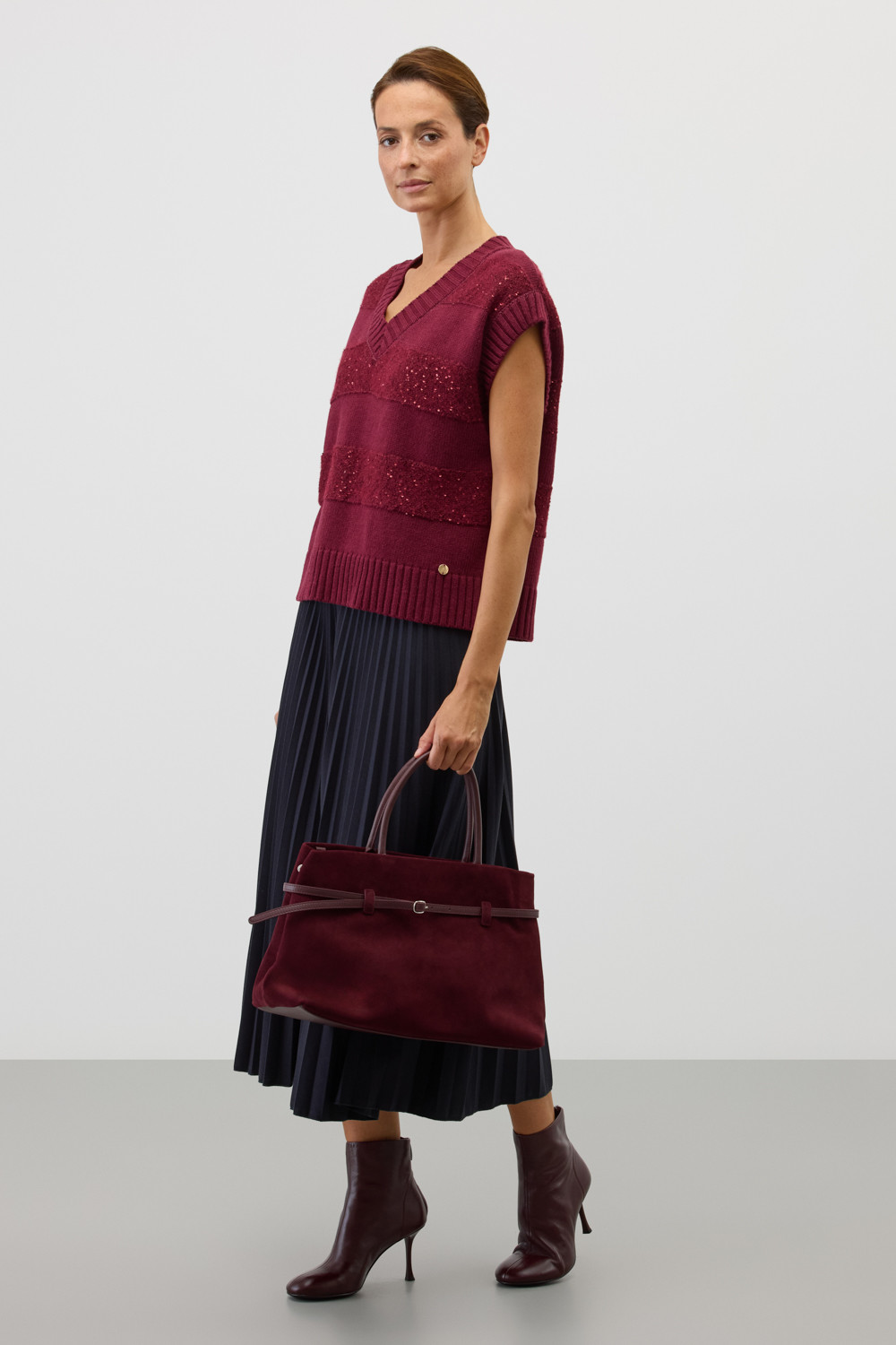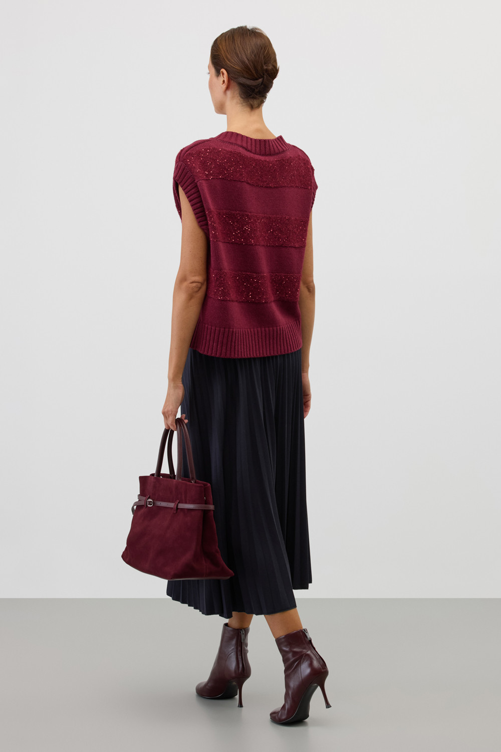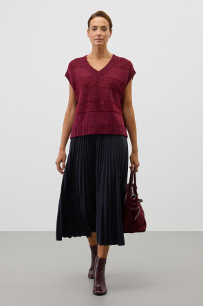 Юбка гофре, выполненная из высококачественного трикотажного полотна DOUBLE FACE, отличается особой легкостью и шелковистой текстурой благодаря силиконовой обработке ткани. Она элегантно струится, создавая ощущение легкости и воздушности. Мелкие складки визуально удлиняют силуэт, подчеркивая женственность.