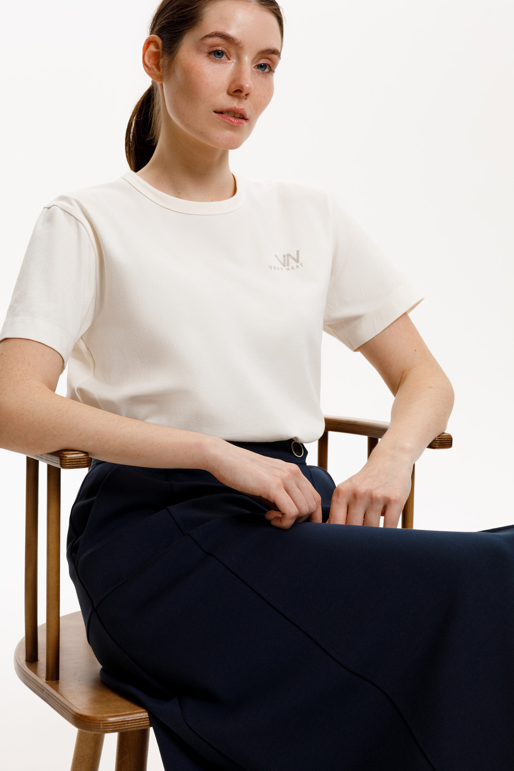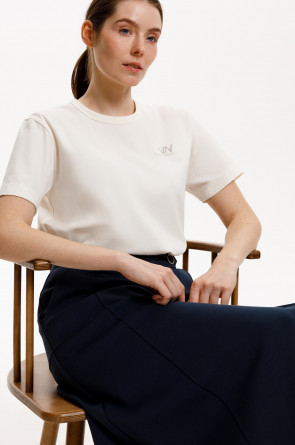 Юбка с акцентной линией талии подчеркивает утонченный силуэт. Длина миди добавляет образу сдержанной классики, делая изделие универсальным для любого случая, а имитации запаха не создает лишний объём. Юбка изготовлена из премиального трикотажа DOUBLE FACE.