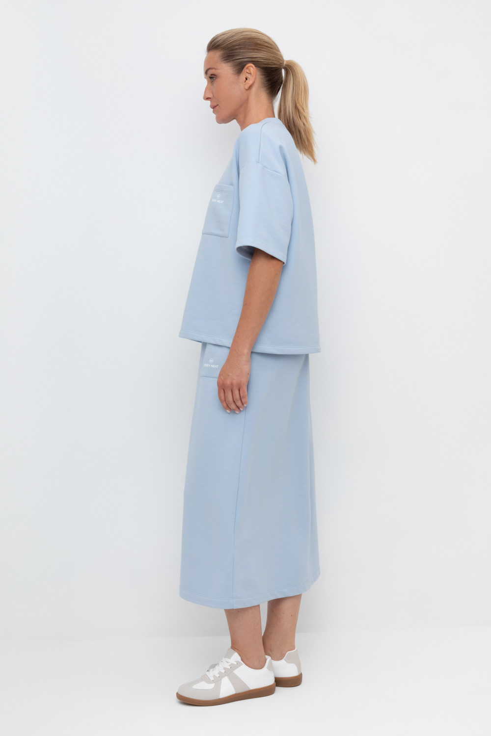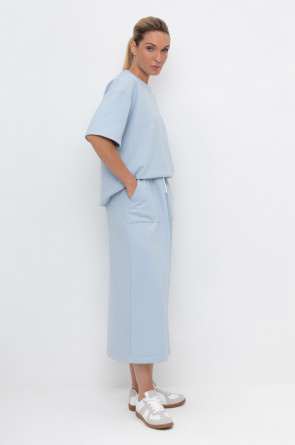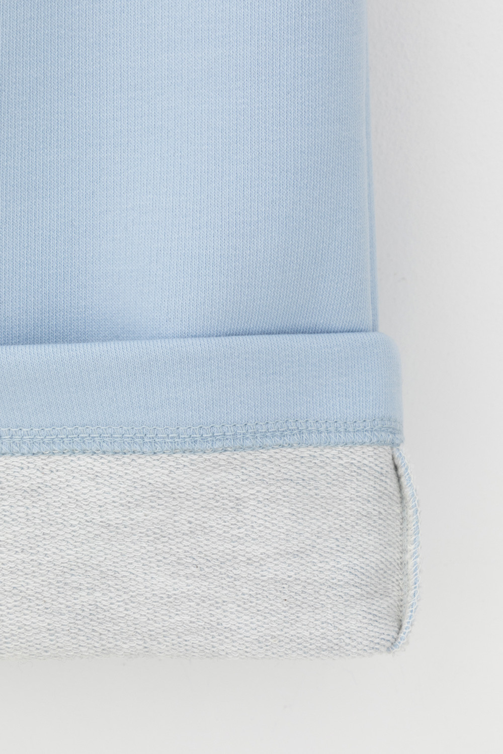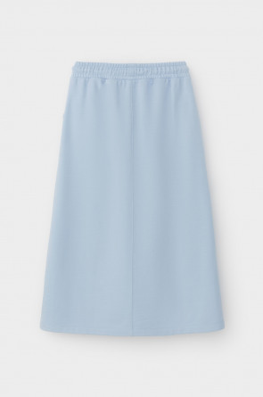 Юбка спортивного силуэта из мягкого двухцветного футера. Внутренняя сторона изделия представлена в натуральном цвете хлопка, внешняя в нежно-розовом. За счет использования крашенной пряжи, данный вид полотна прошел минимальную обработку, что придало изделию мягкость и шелковистость.