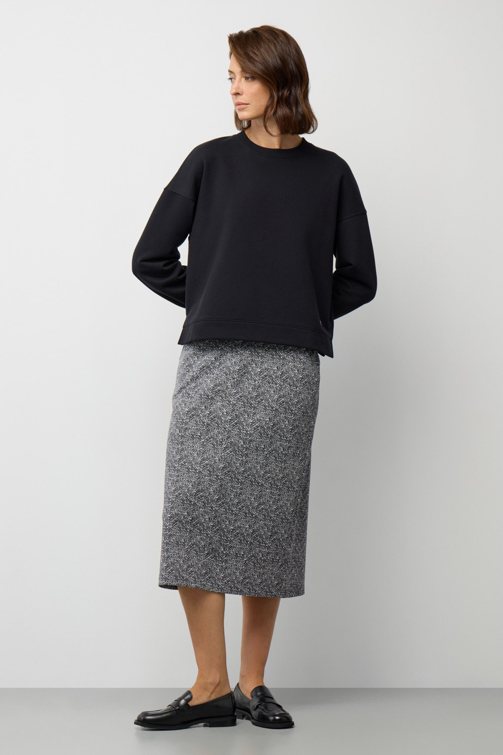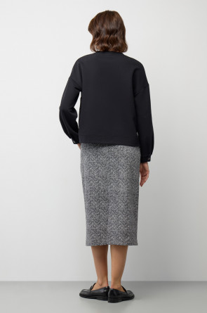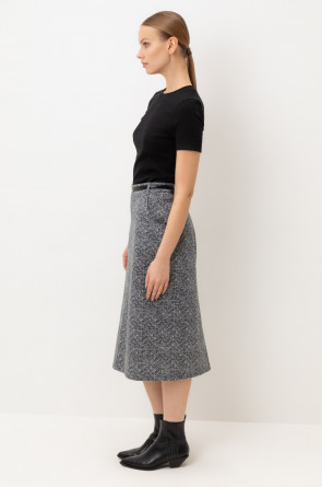 Юбка прямого силуэта изготовлена из премиального трикотажного полотна DOUBLE FACE. Особая обработка силиконом делает ее легкой и придает шелковистую текстуру. Прямой крой подчеркивает силуэт, создавая элегантный классический образ.
