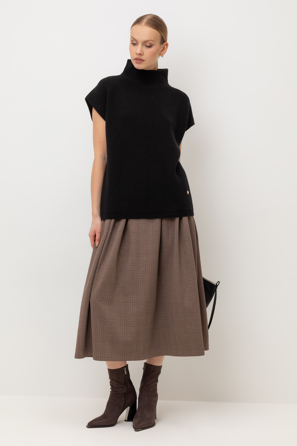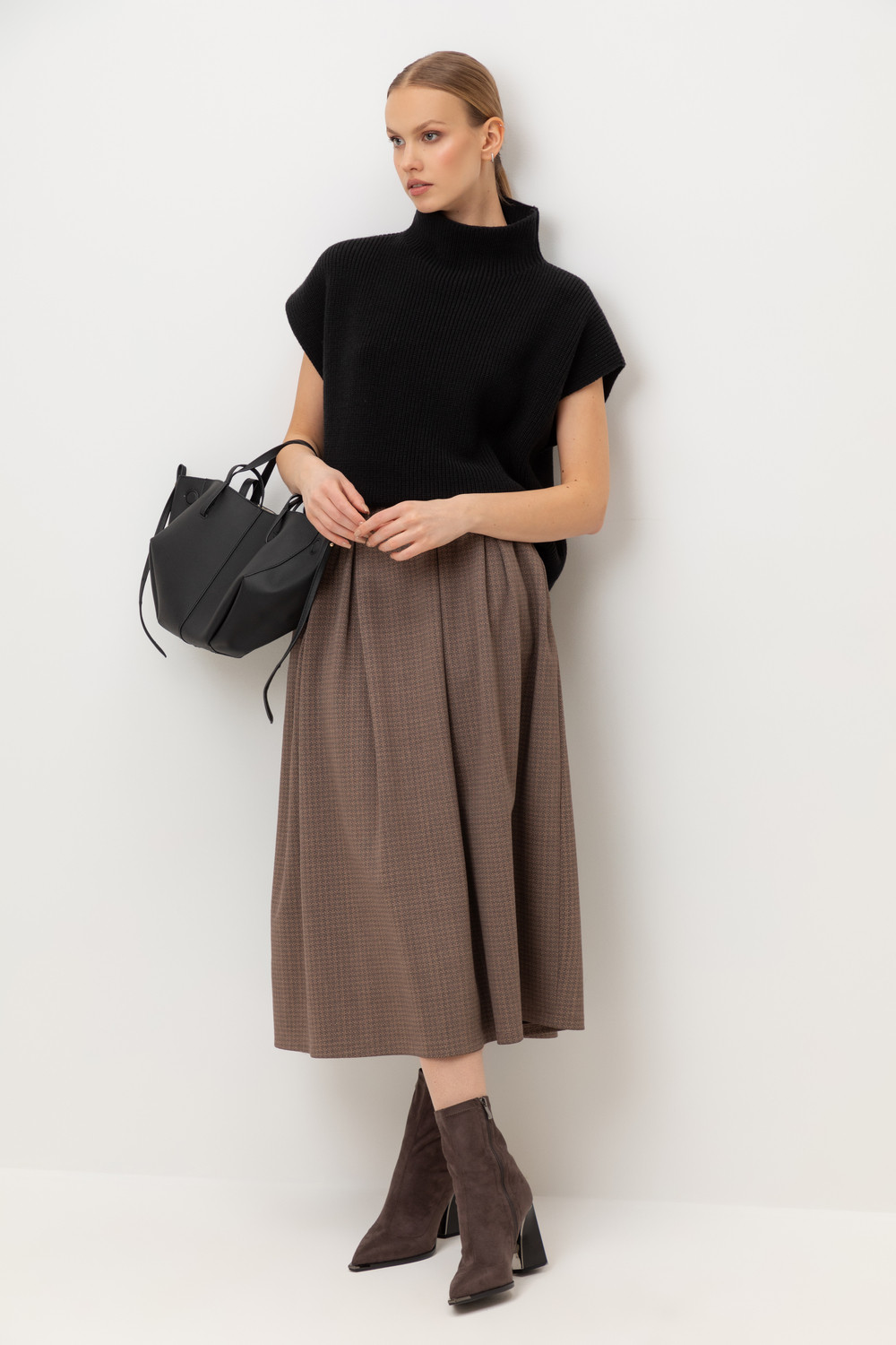 Юбка в складку выполнена из инновационного высококачественного трикотажного полотна DOUBLE FACE, который сочетает в себе мягкость натуральных волокон и долговечность современных технологий. Мягкая резинка на поясе обеспечивает комфортную посадку без ощущения давления и дискомфорта.
