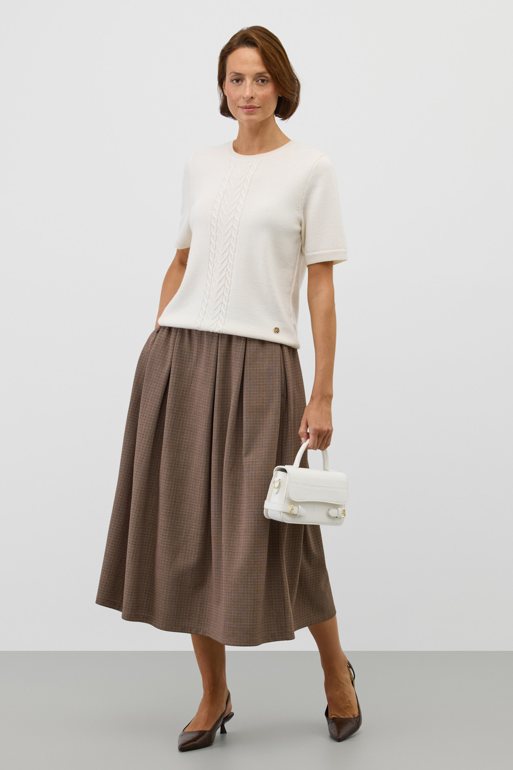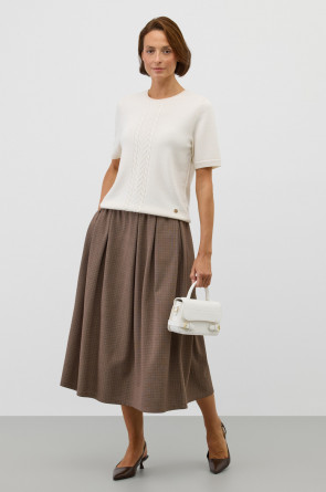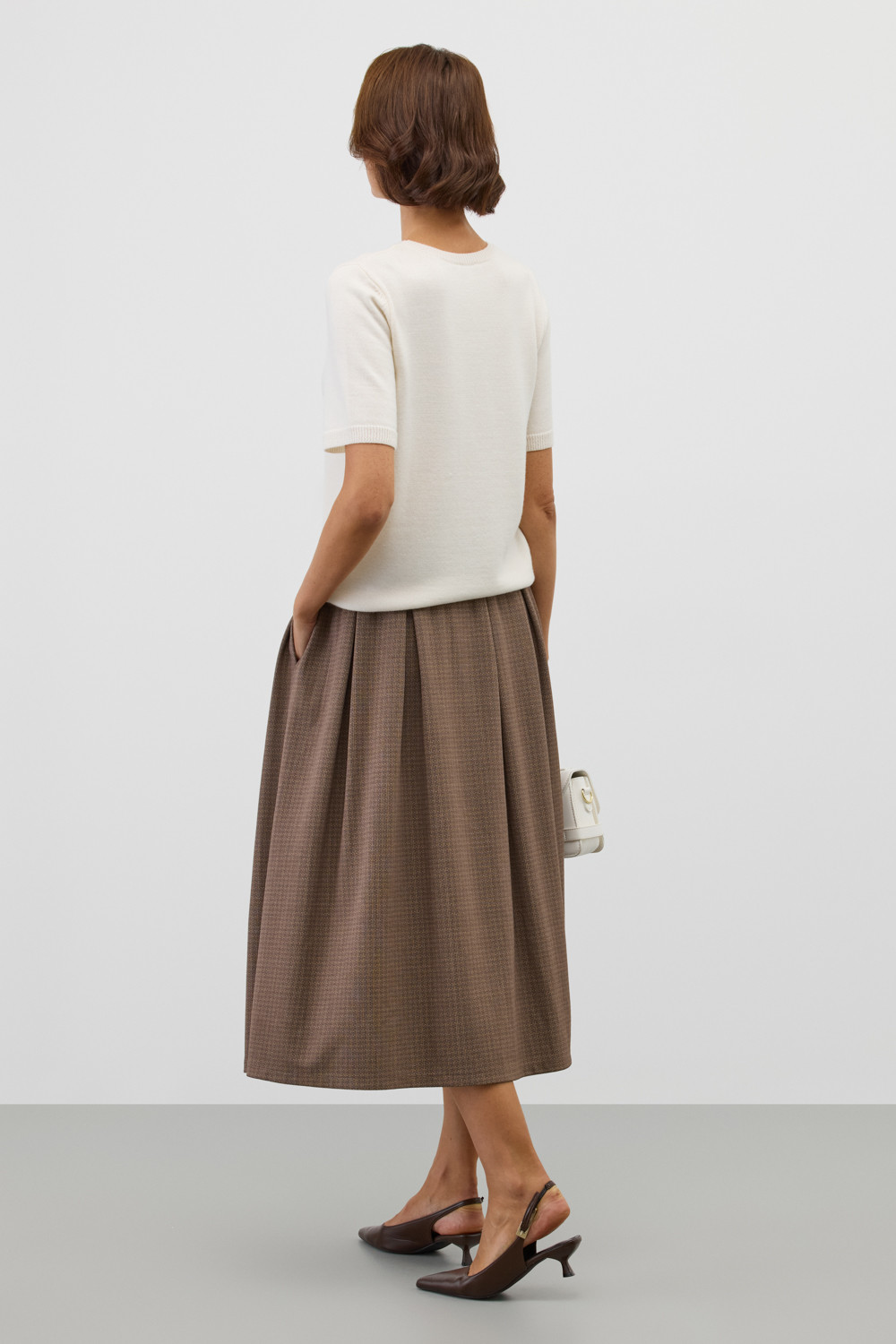 Юбка в складку выполнена из инновационного высококачественного трикотажного полотна DOUBLE FACE, который сочетает в себе мягкость натуральных волокон и долговечность современных технологий. Мягкая резинка на поясе обеспечивает комфортную посадку без ощущения давления и дискомфорта.