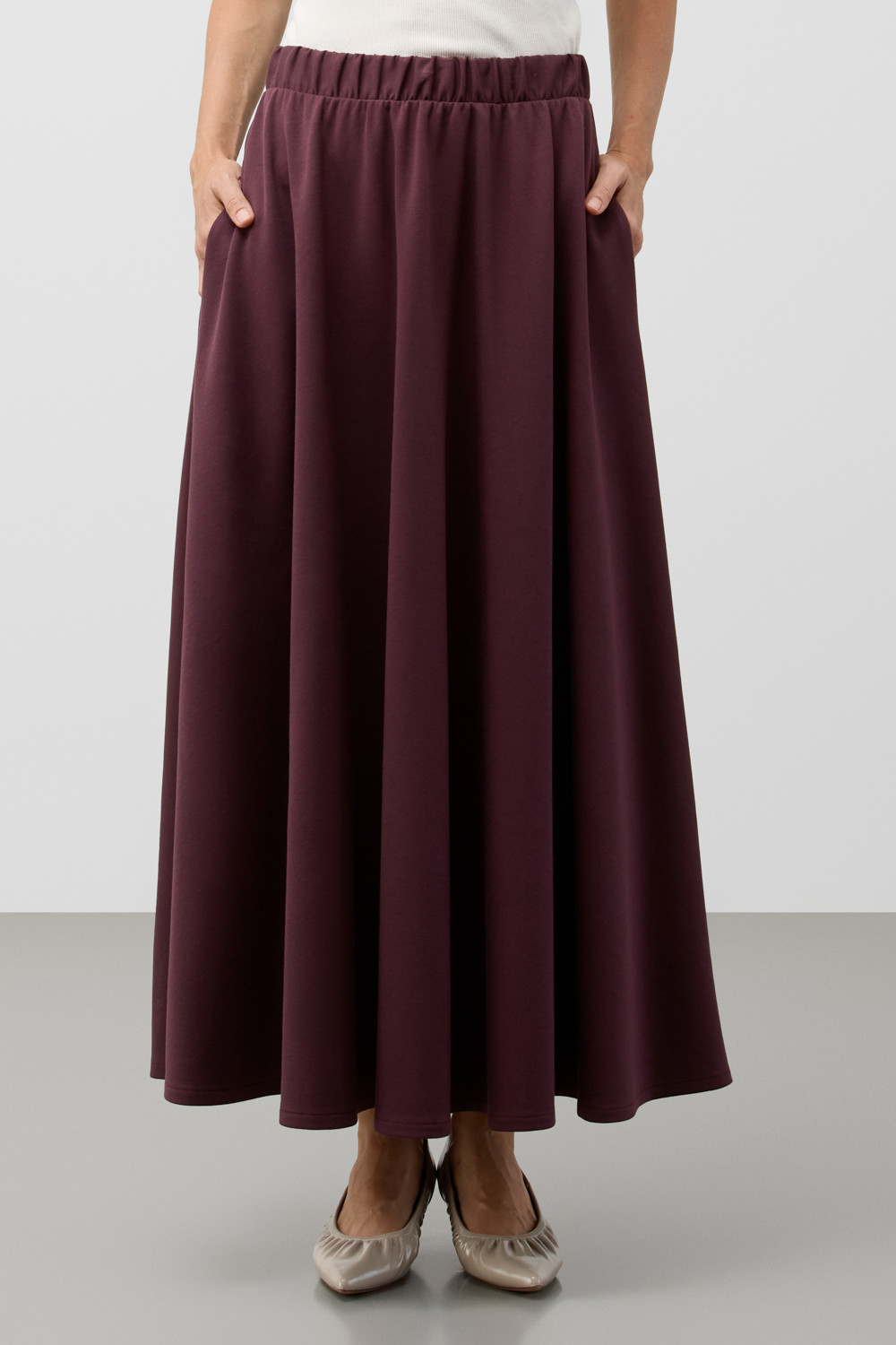 Юбка-полусолнце выполнена из инновационного высококачественного трикотажного полотна DOUBLE FACE, который сочетает в себе мягкость натуральных волокон и долговечность современных технологий. Мягкая резинка на поясе обеспечивает комфортную посадку без ощущения давления и дискомфорта.
