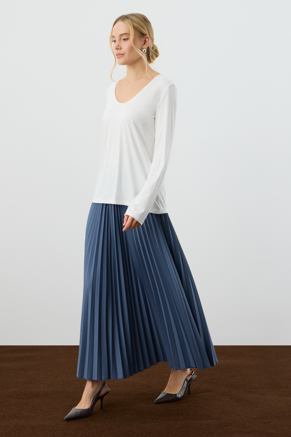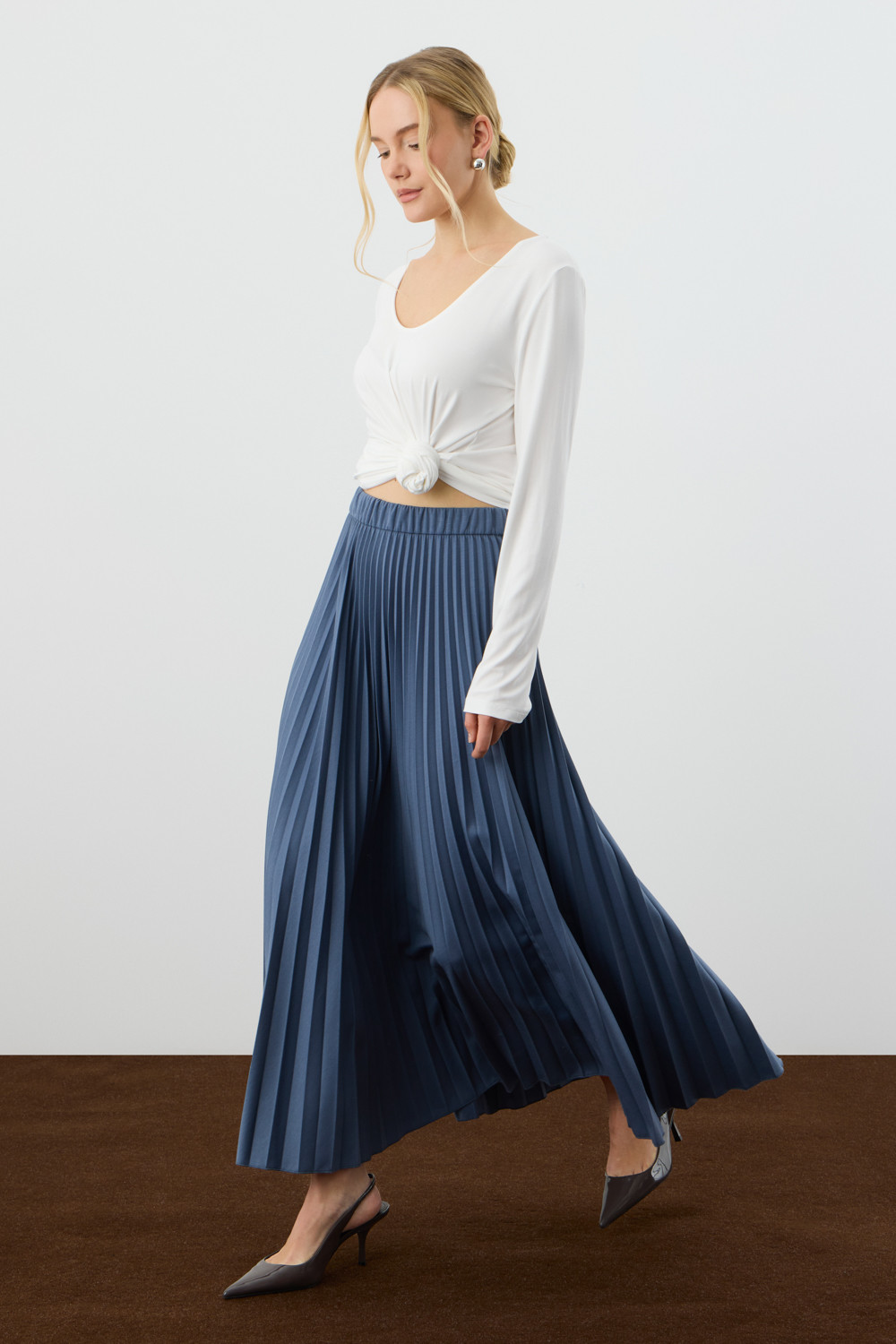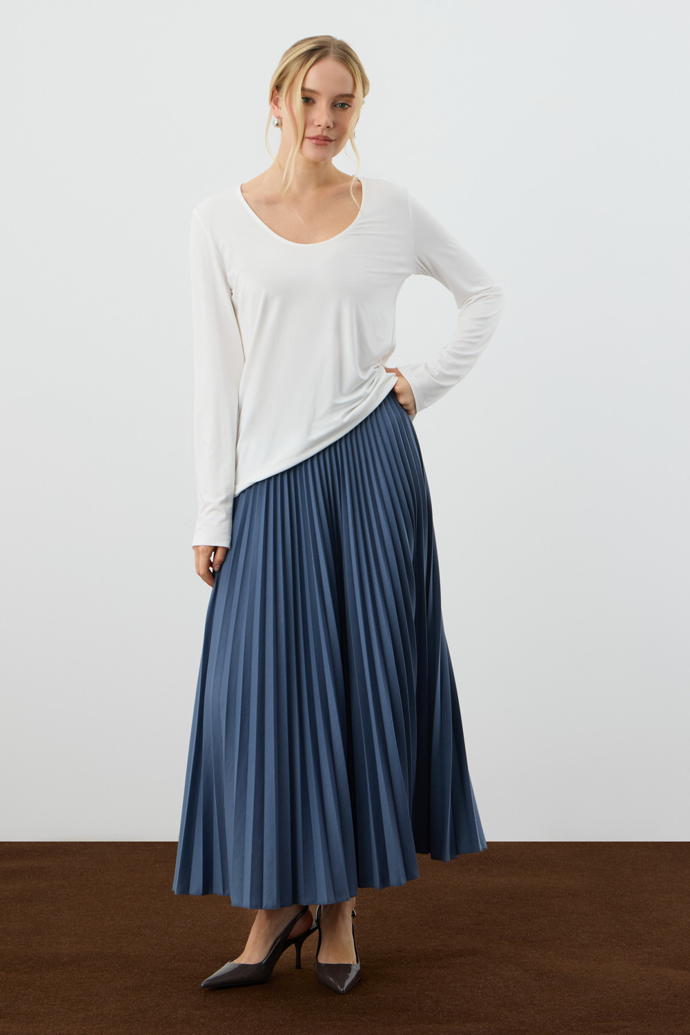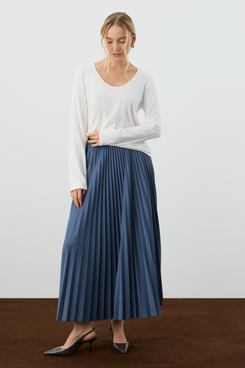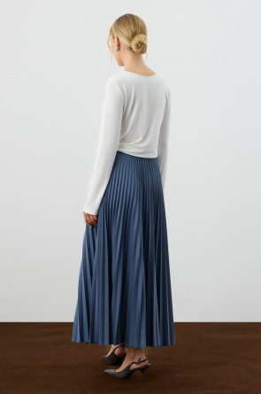 Юбка гофре выполнена из премиального трикотажа DOUBLE FACE. Характеризуется множеством узких складок, создающих объем и подвижность.