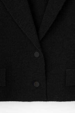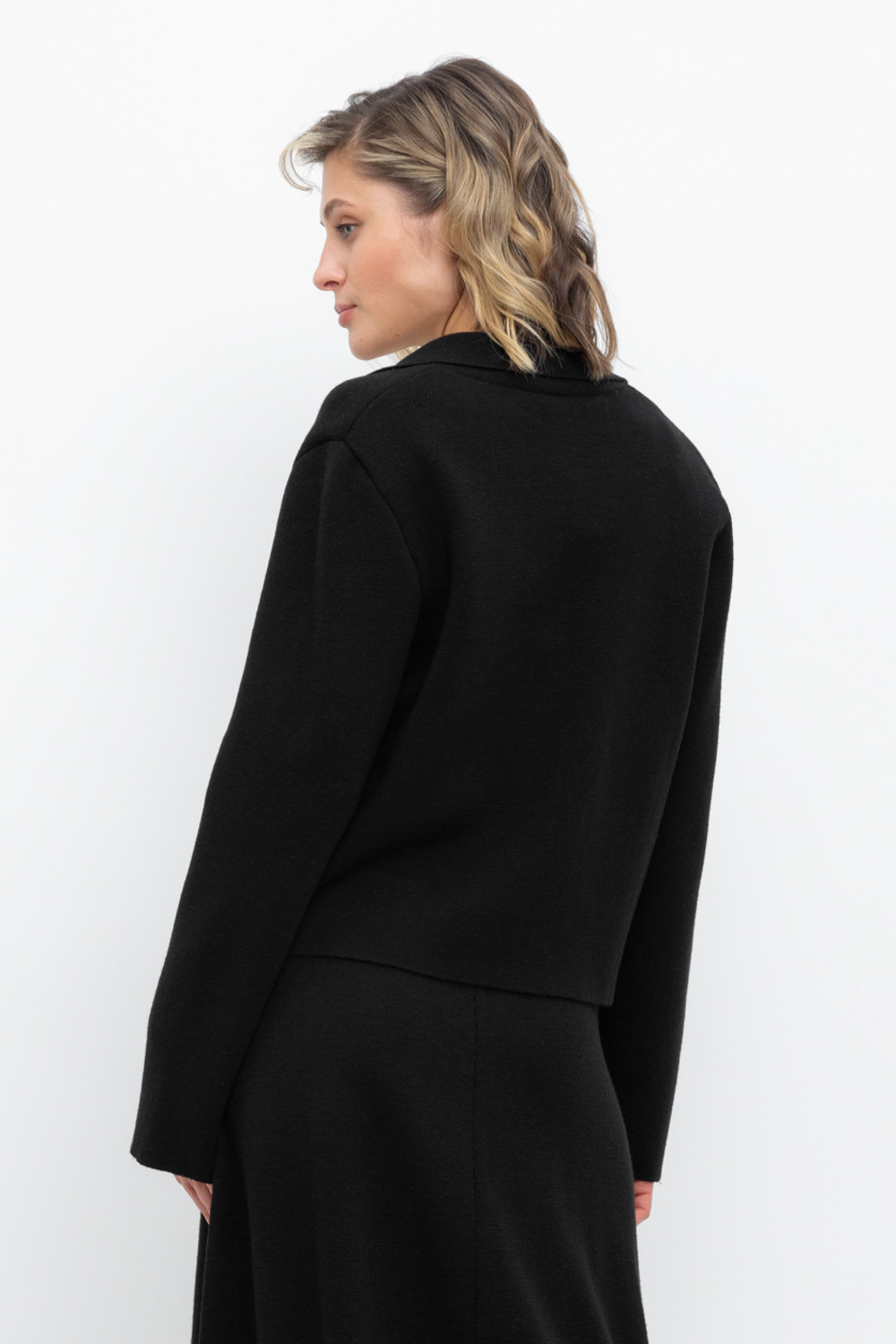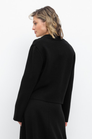 Женский укороченный жакет прямого кроя с имитацией карманов с клапаном, связан комбиниркой. Шерсть мериноса в составе сохраняет тепло, акрил делает изделие мягким. Прямой силуэт идеально подходит как к юбке, так и к брюкам.