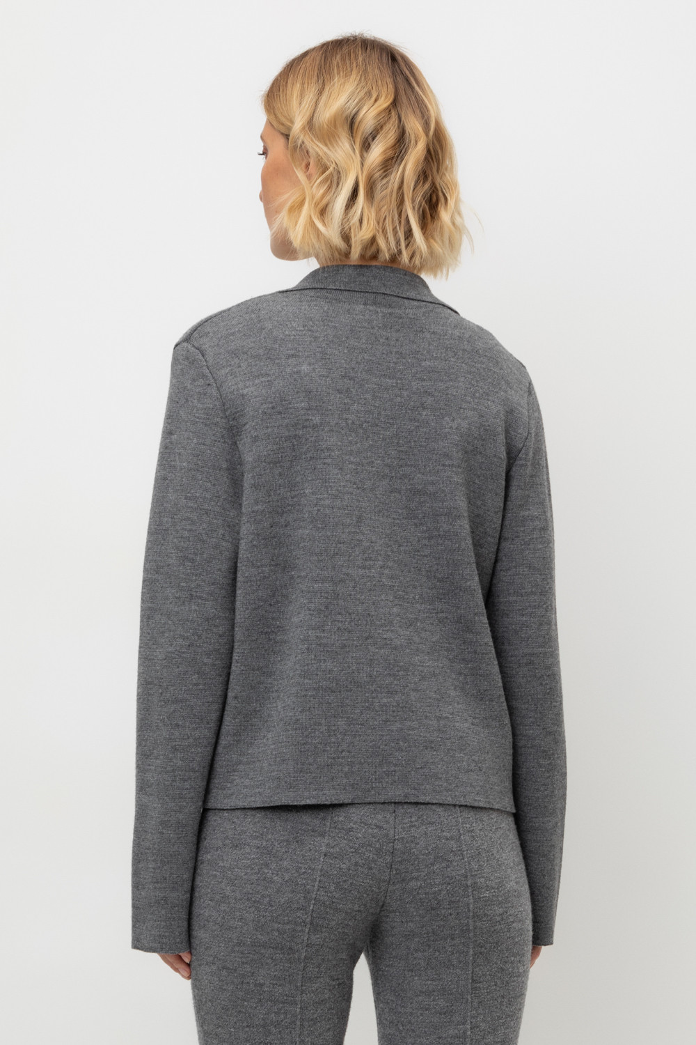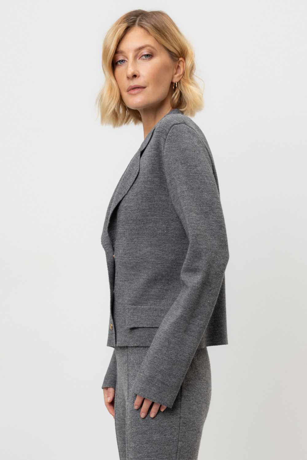Женский укороченный жакет прямого кроя с имитацией карманов с клапаном, связан комбиниркой. Шерсть в составе сохраняет тепло, акрил делает изделие мягким. Прямой силуэт идеально подходит как к юбке, так и к брюкам.
