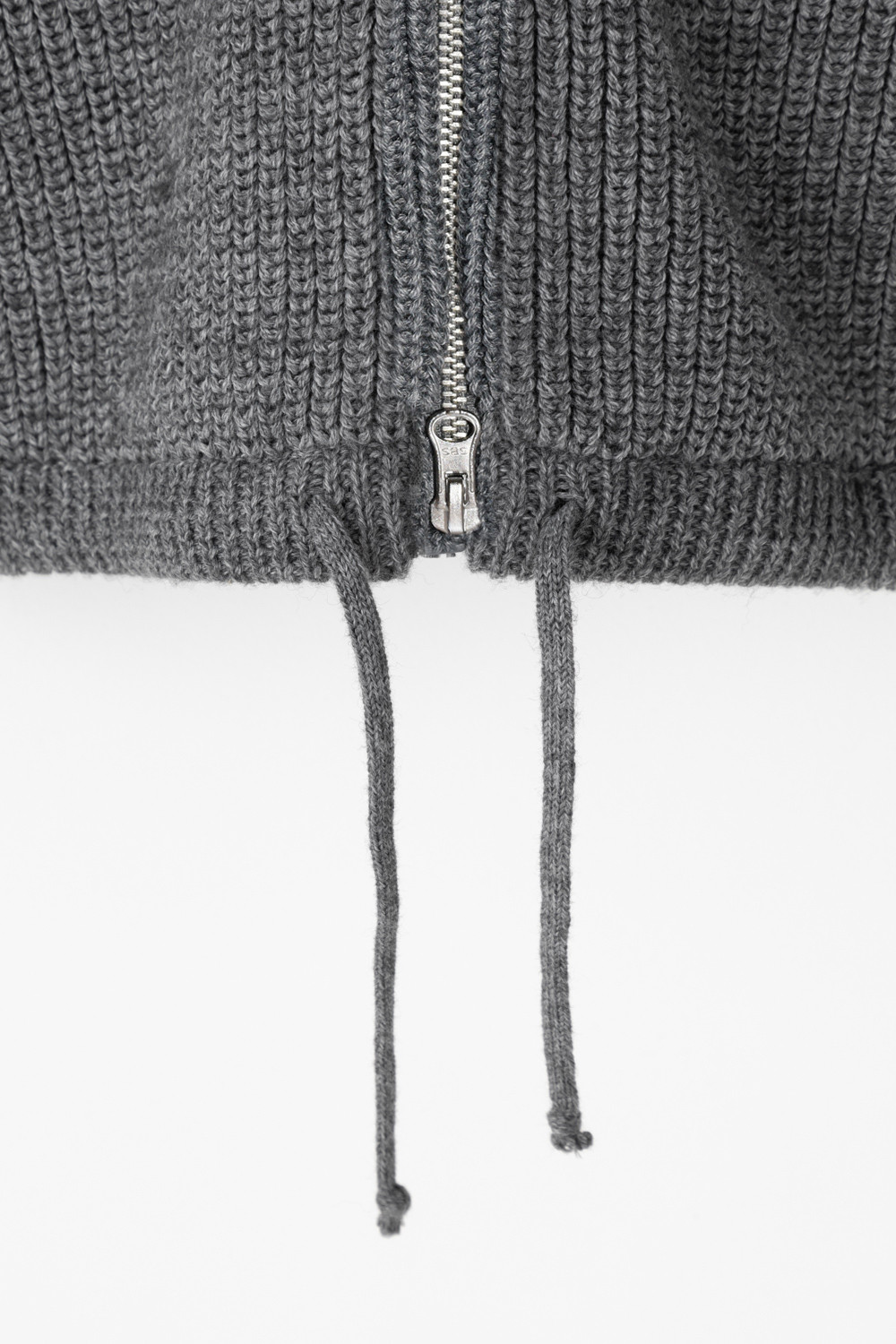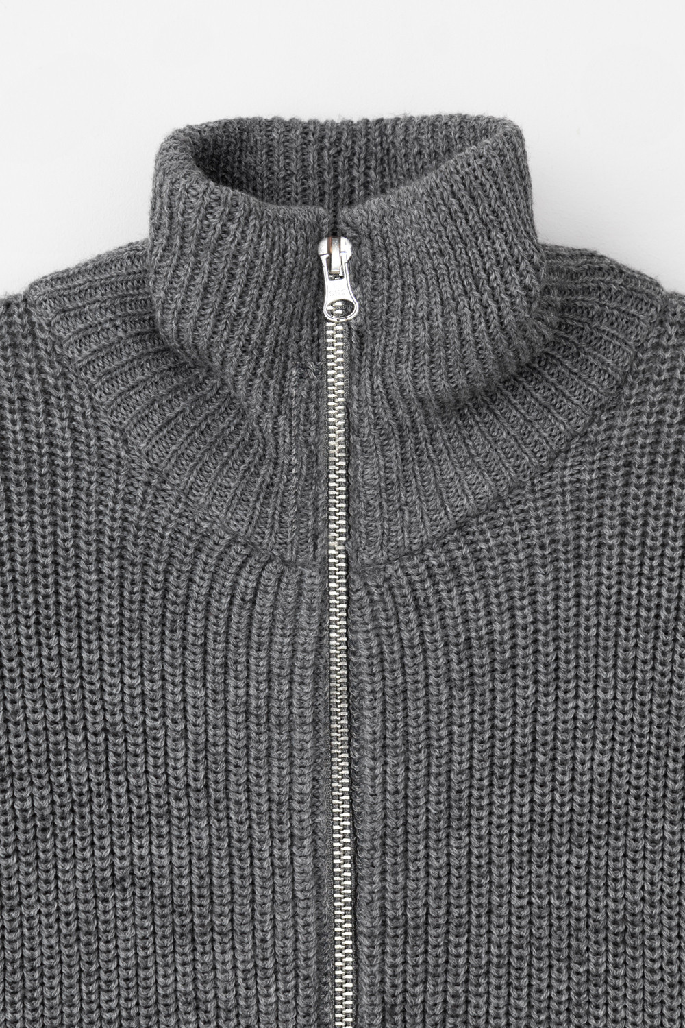 Джемпер вязаный на молнии с объёмными рукавами. Изготовлен из мягкой полушерстяной пряжи. Шерсть в составе сохраняет тепло, акрил делает изделие мягким.