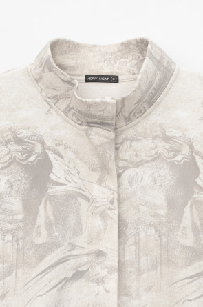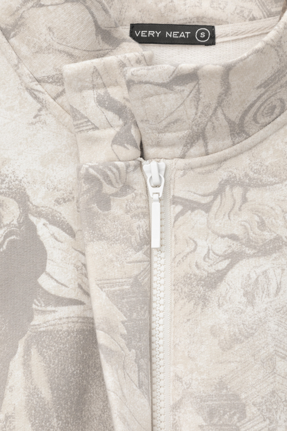 Укороченная трикотажная куртка на молнии с карманами и кулиской по низу. Произведена из мягкого набивного трикотажного футера. Спущенные рукава и манжеты добавляют объем.