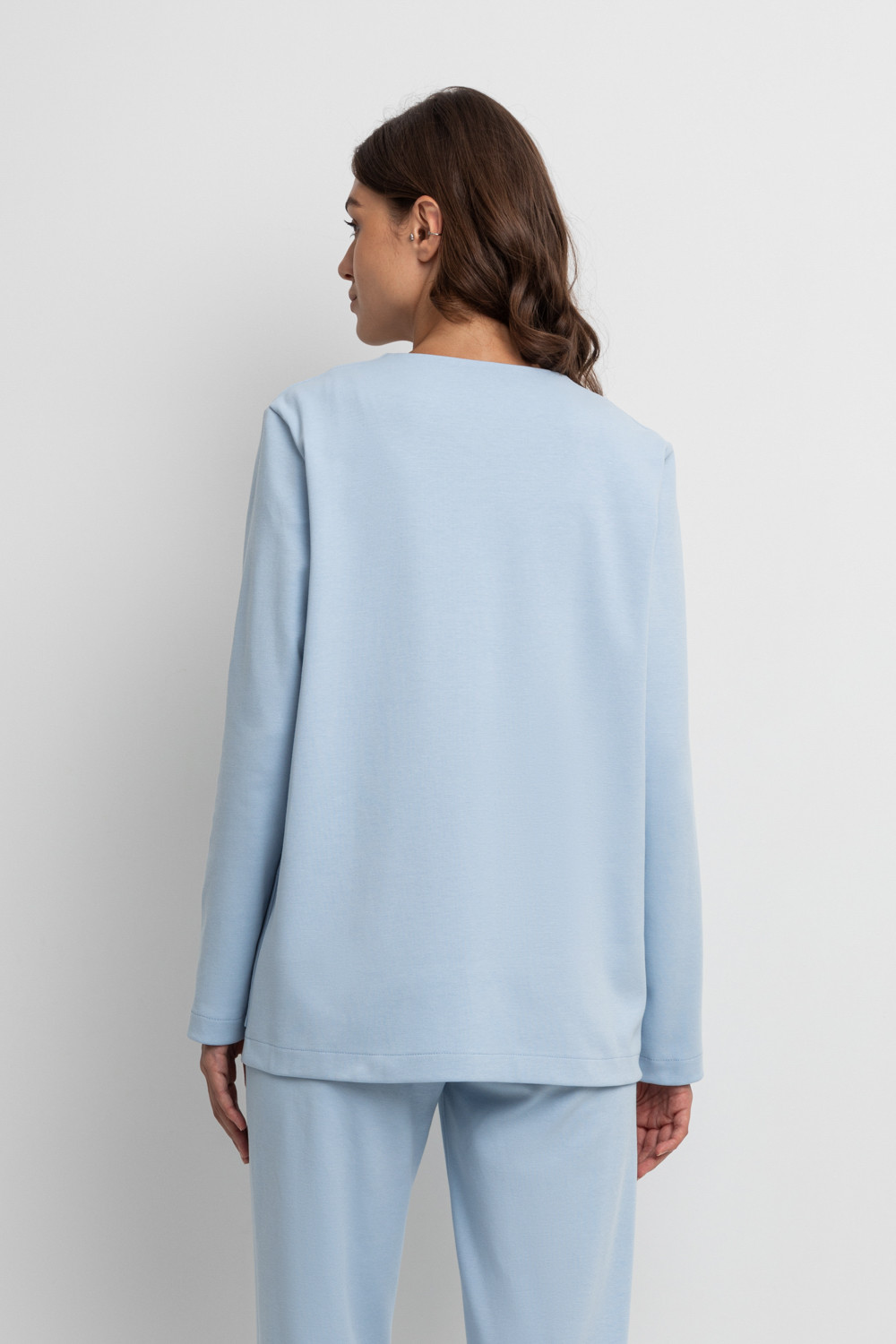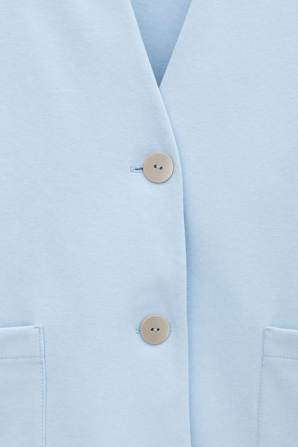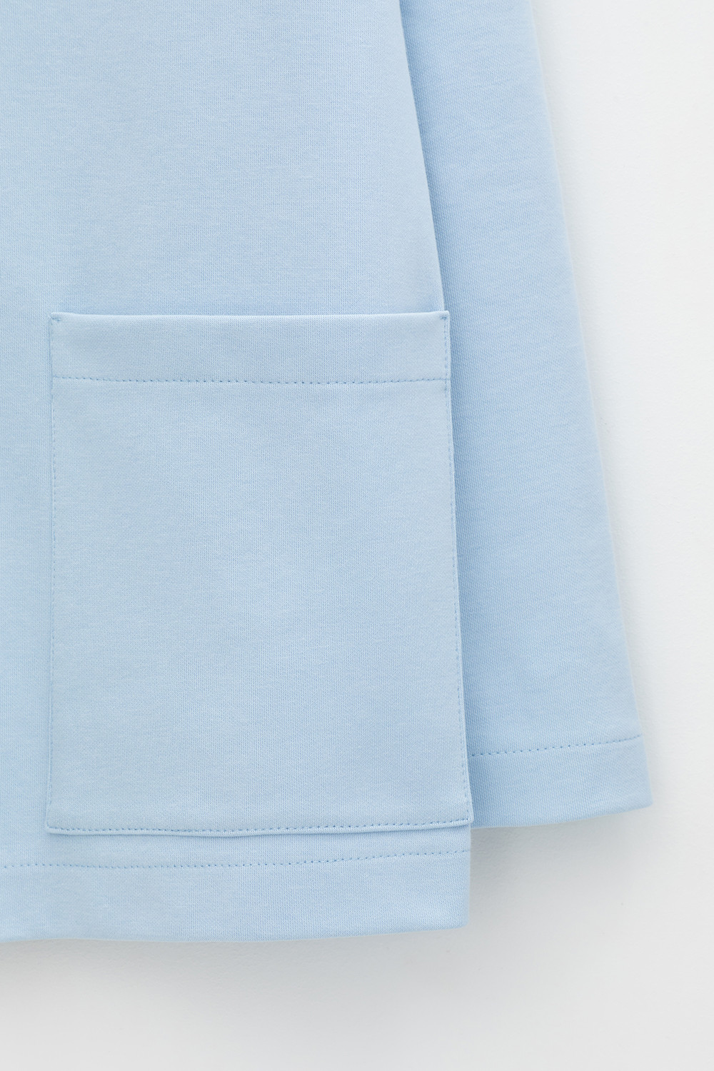 Однобортный, прямой немного удлиненный жакет с застежкой на пуговицы и двумя накладными карманами из плотного гладкого трикотажа интерлок. Все трикотажные изделия производятся в соответствии с нормами Швейцарского сертификата ЭкоТекс. Сделано в России