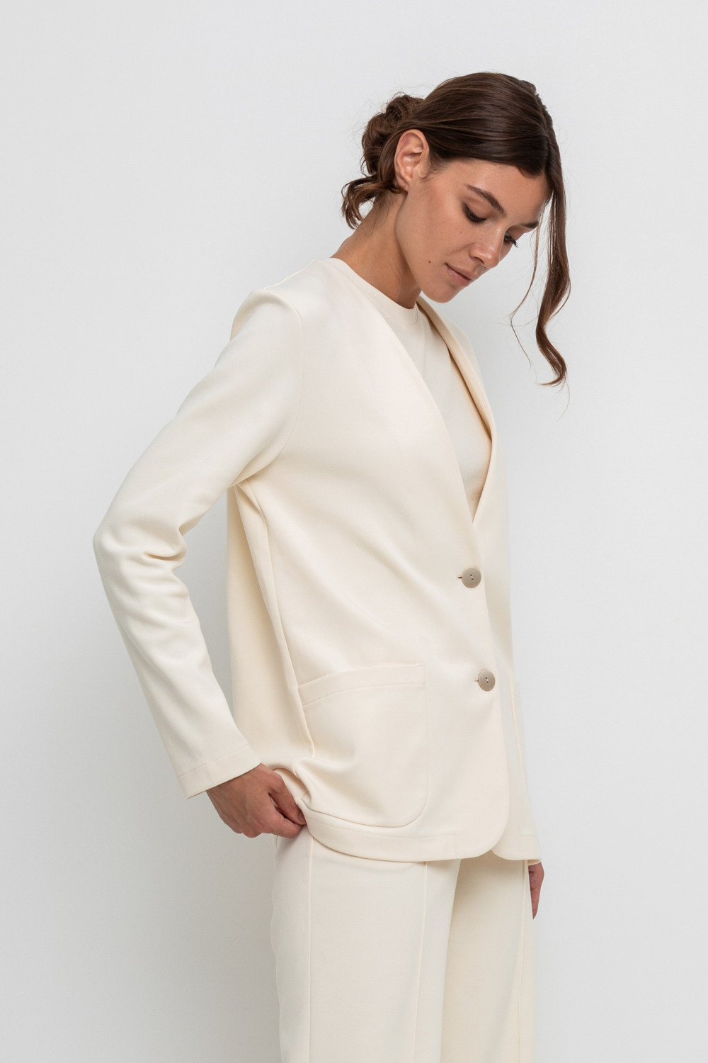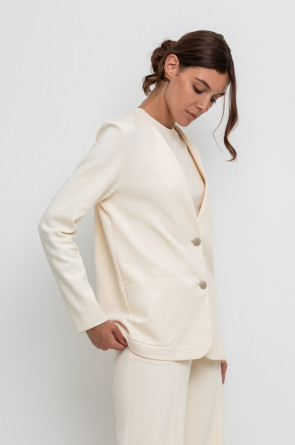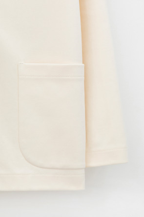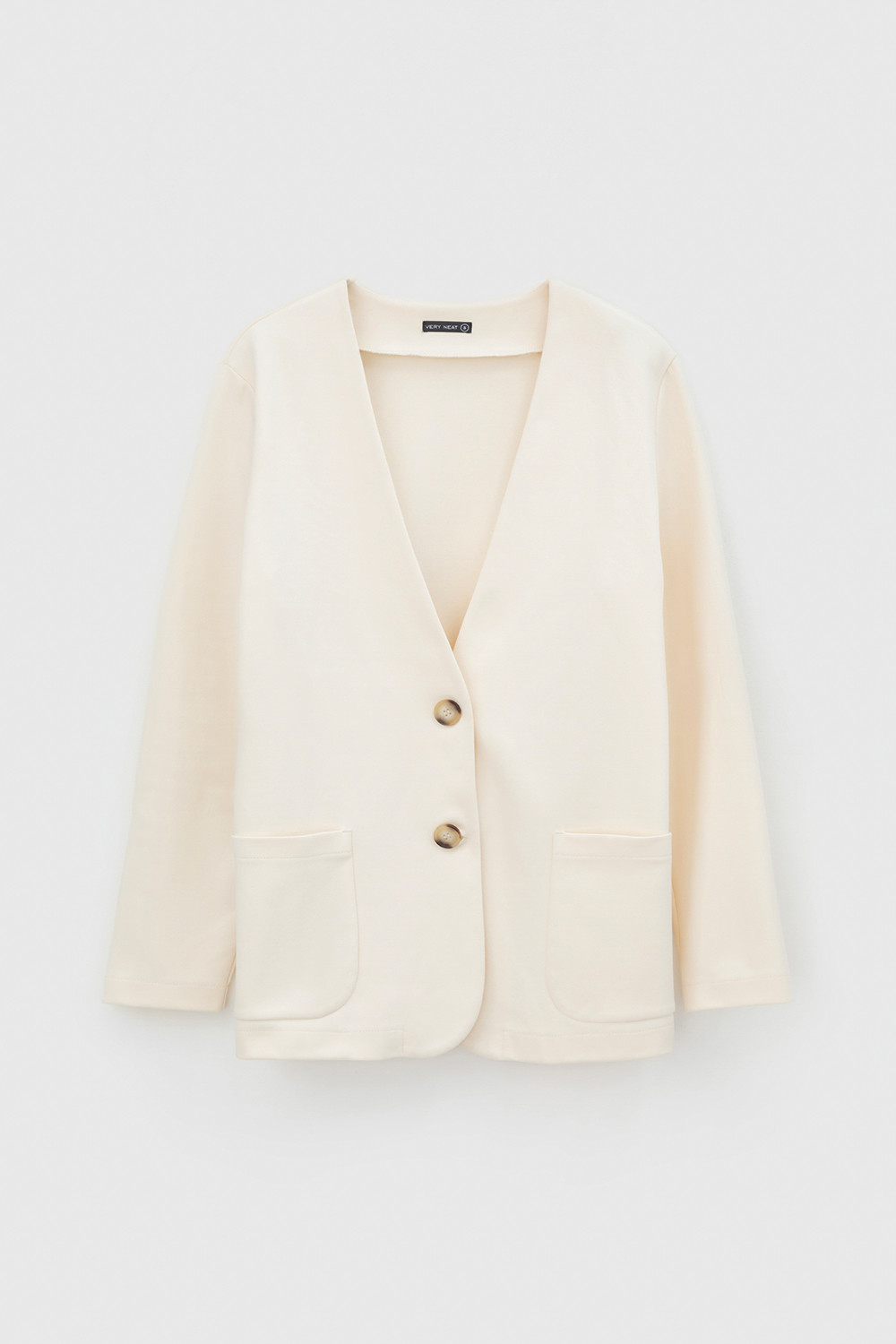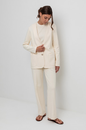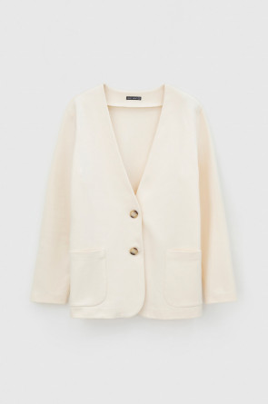 Однобортный, прямой немного удлиненный жакет с застежкой на пуговицы и двумя накладными карманами. Все трикотажные изделия производятся в соответствии с нормами Швейцарского сертификата ЭкоТекс. Сделано в России