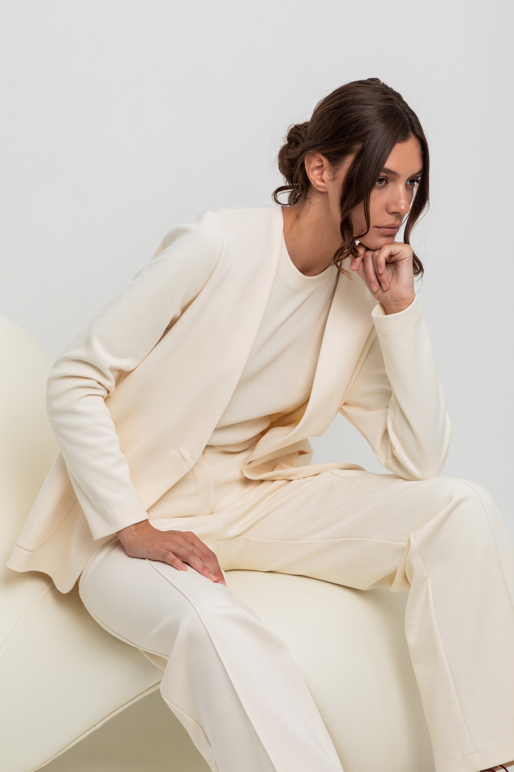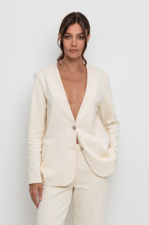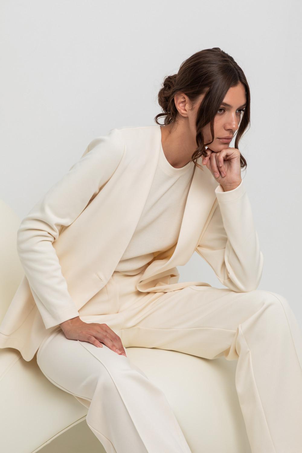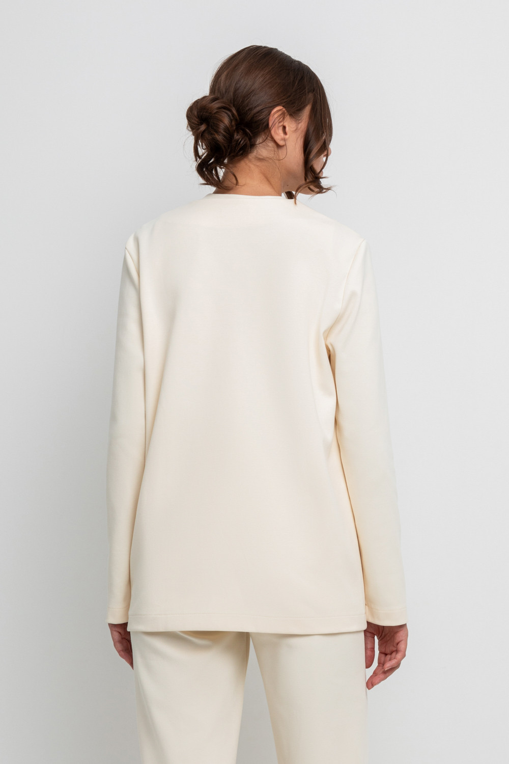 Однобортный, прямой немного удлиненный жакет с застежкой на пуговицы и двумя накладными карманами. Все трикотажные изделия производятся в соответствии с нормами Швейцарского сертификата ЭкоТекс. Сделано в России