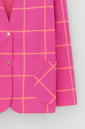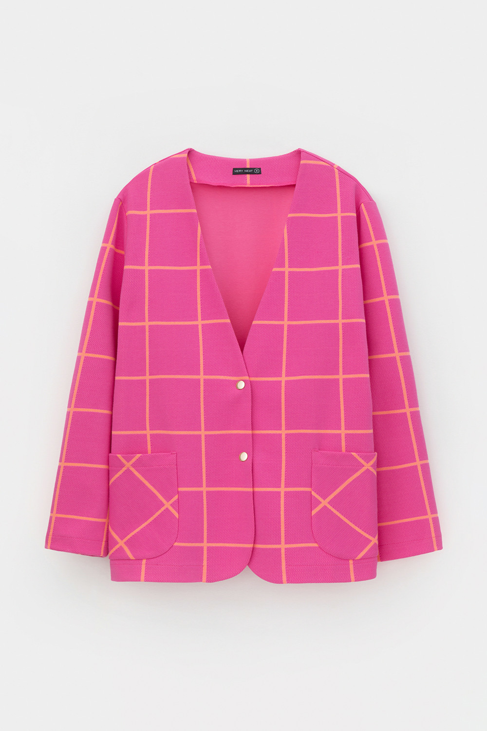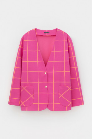 Однобортный, прямой немного удлиненный жакет с застежкой на кнопки и двумя накладными карманами из плотного набивного гладкого трикотажа интерлок. Все трикотажные изделия производятся в соответствии с нормами Швейцарского сертификата ЭкоТекс. Сделано в России - 80% хлопок, 20% ПЭ