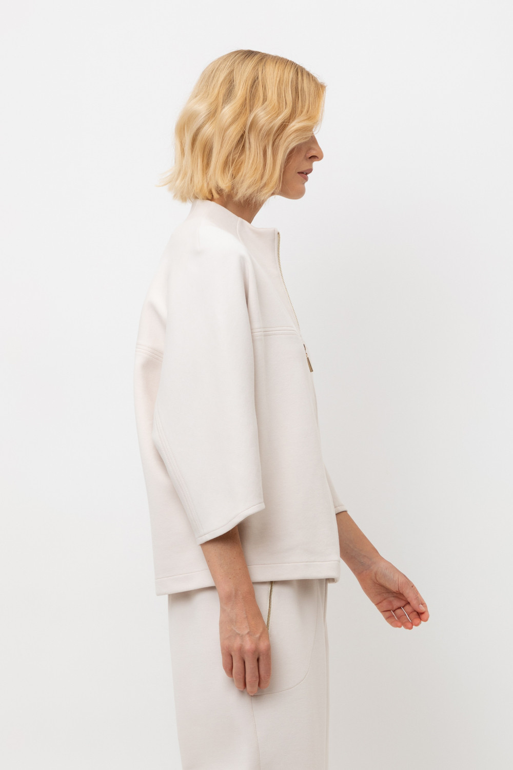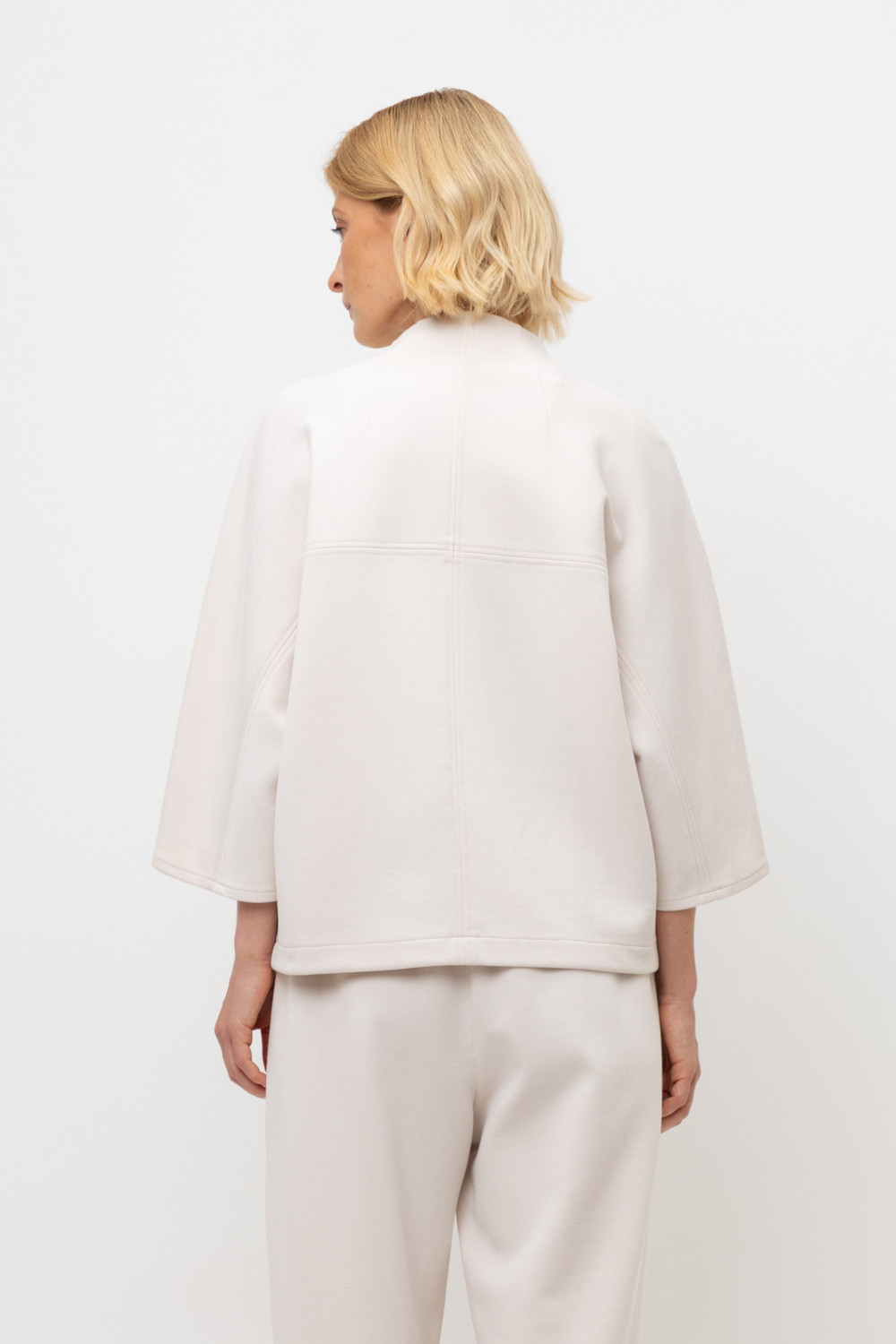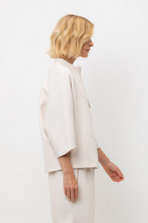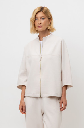 Жакет из высококачественного трикотажного полотна. За счет фактуры переплетения и специальных обработок сохраняет силуэт и форму. Хлопок в составе добавляет комфорт при носке. В сочетании с брюками из этой коллекции вы создадите расслабленный образ для летних дней.