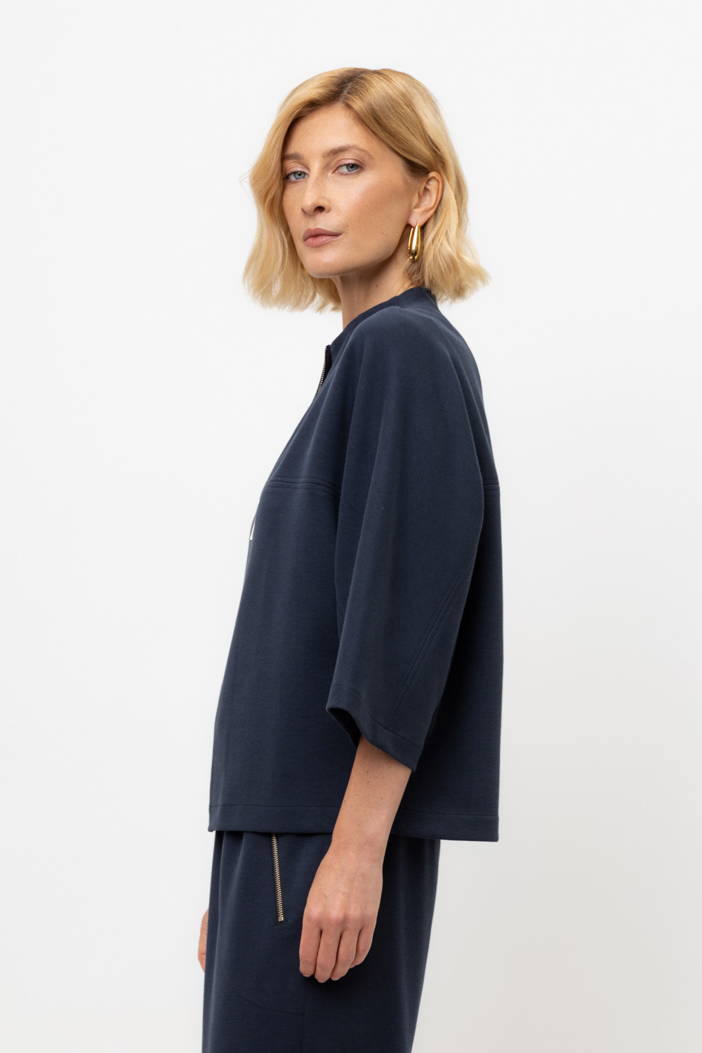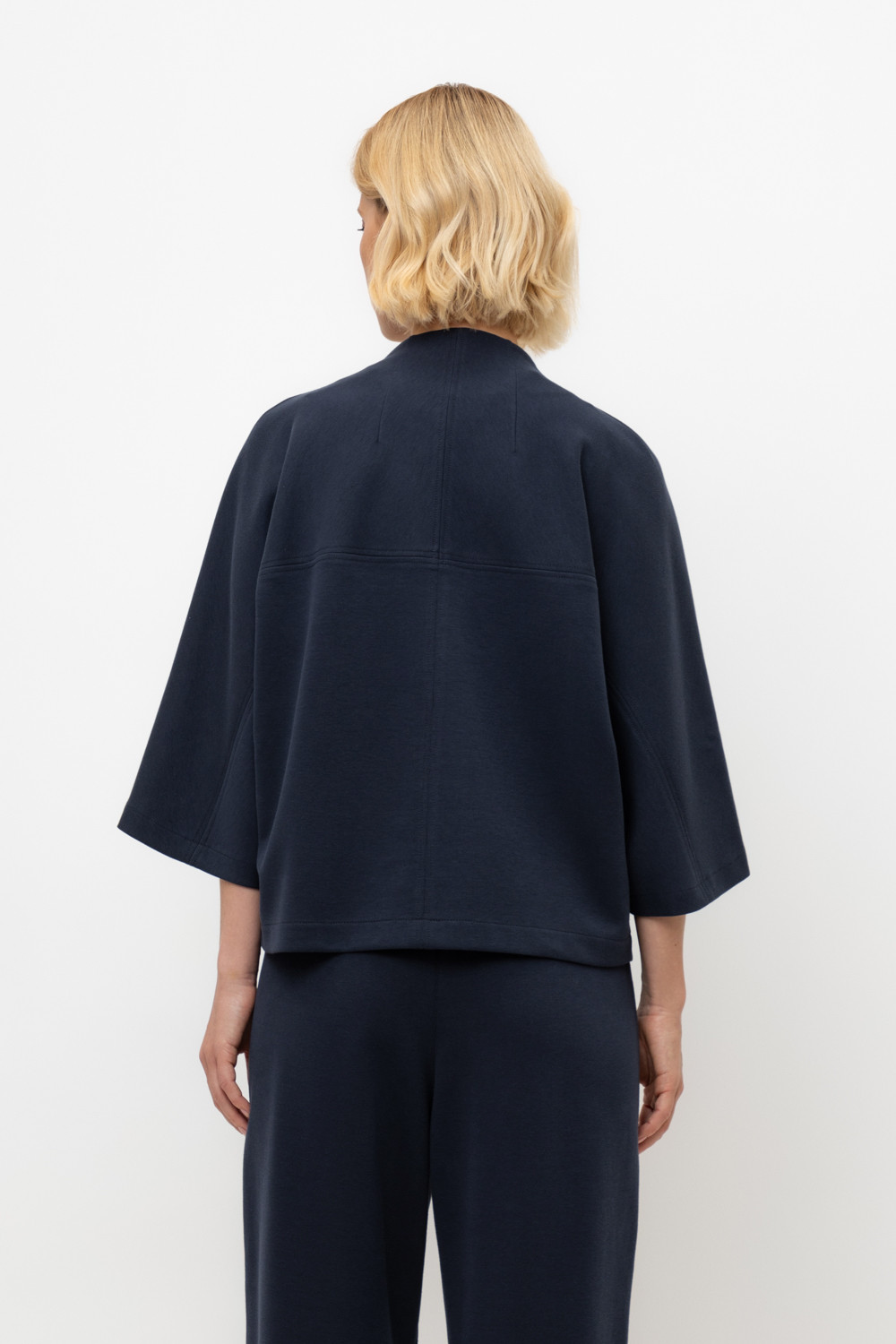 Жакет из высококачественного трикотажного полотна. За счет фактуры переплетения и специальных обработок сохраняет силуэт и форму. Хлопок в составе добавляет комфорт при носке. В сочетании с брюками из этой коллекции вы создадите расслабленный образ для летних дней.