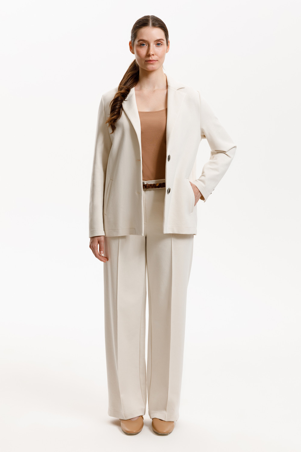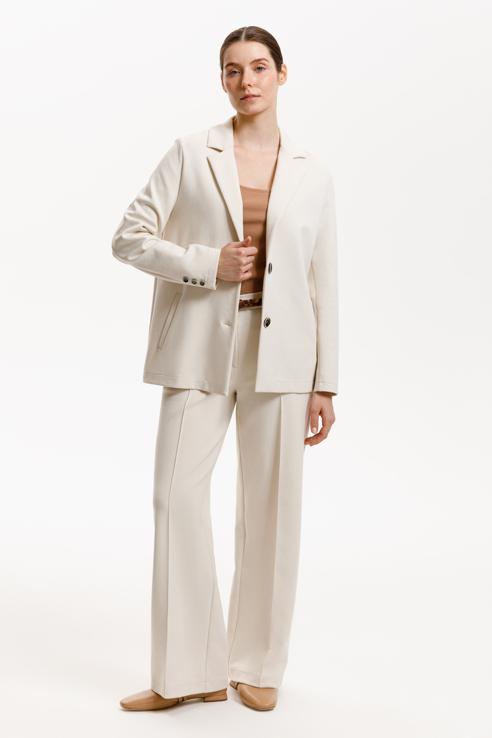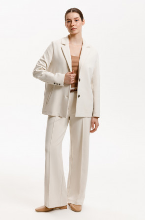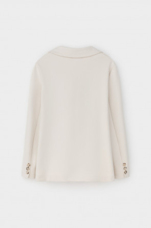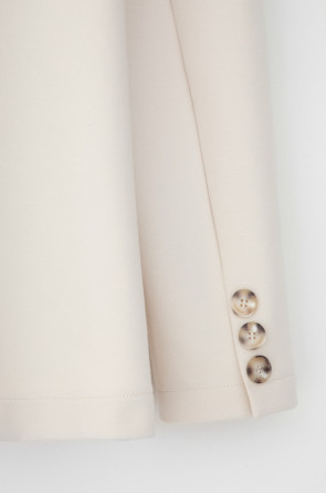 Однобортный жакет приталенного силуэта из премиального трикотажа DOUBLE FACE. За счет фактуры переплетения, добавления спандекса и специальных обработок сохраняет силуэт и форму. Хлопок в составе добавляет комфорта при носке.