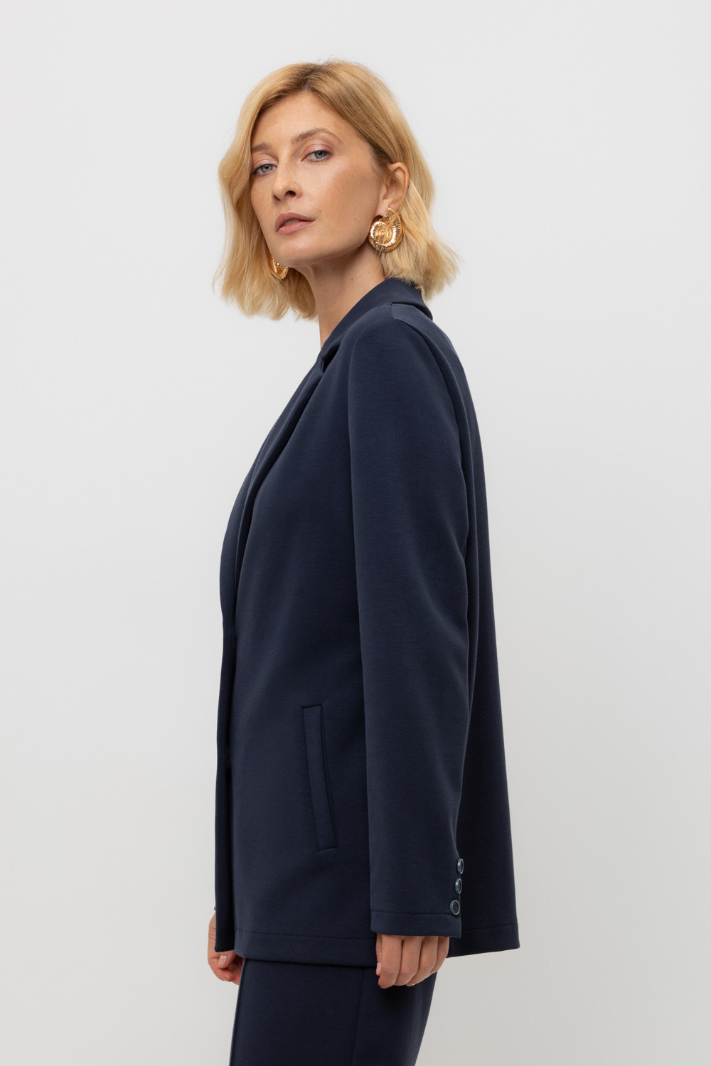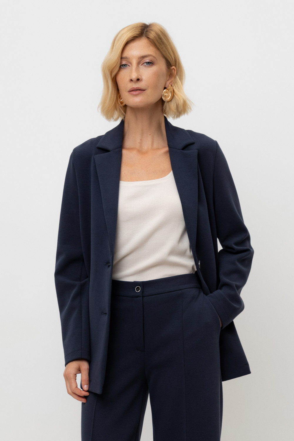 Однобортный жакет приталенного силуэта из премиального трикотажа DOUBLE FACE. За счет фактуры переплетения, добавления спандекса и специальных обработок сохраняет силуэт и форму. Хлопок в составе добавляет комфорта при носке. В сочетании с брюками из этой коллекции вы создадите элегантный образ на каждый день.