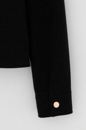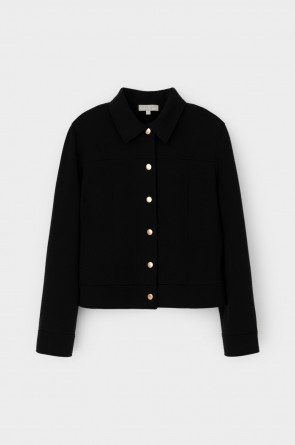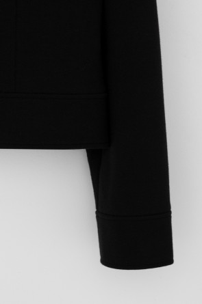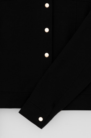 Укорочённый жакет, изготовленный из премиального трикотажного полотна DOUBLE FACE с добавлением спандекса. За счет фактуры переплетения и специальных обработок сохраняет силуэт и форму, что позволяет сочетать его как с юбкой, так и с брюками. Хлопок в составе добавит комфорта при носке.