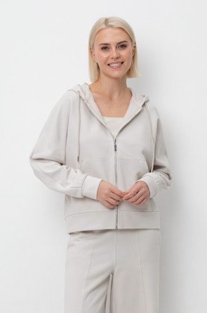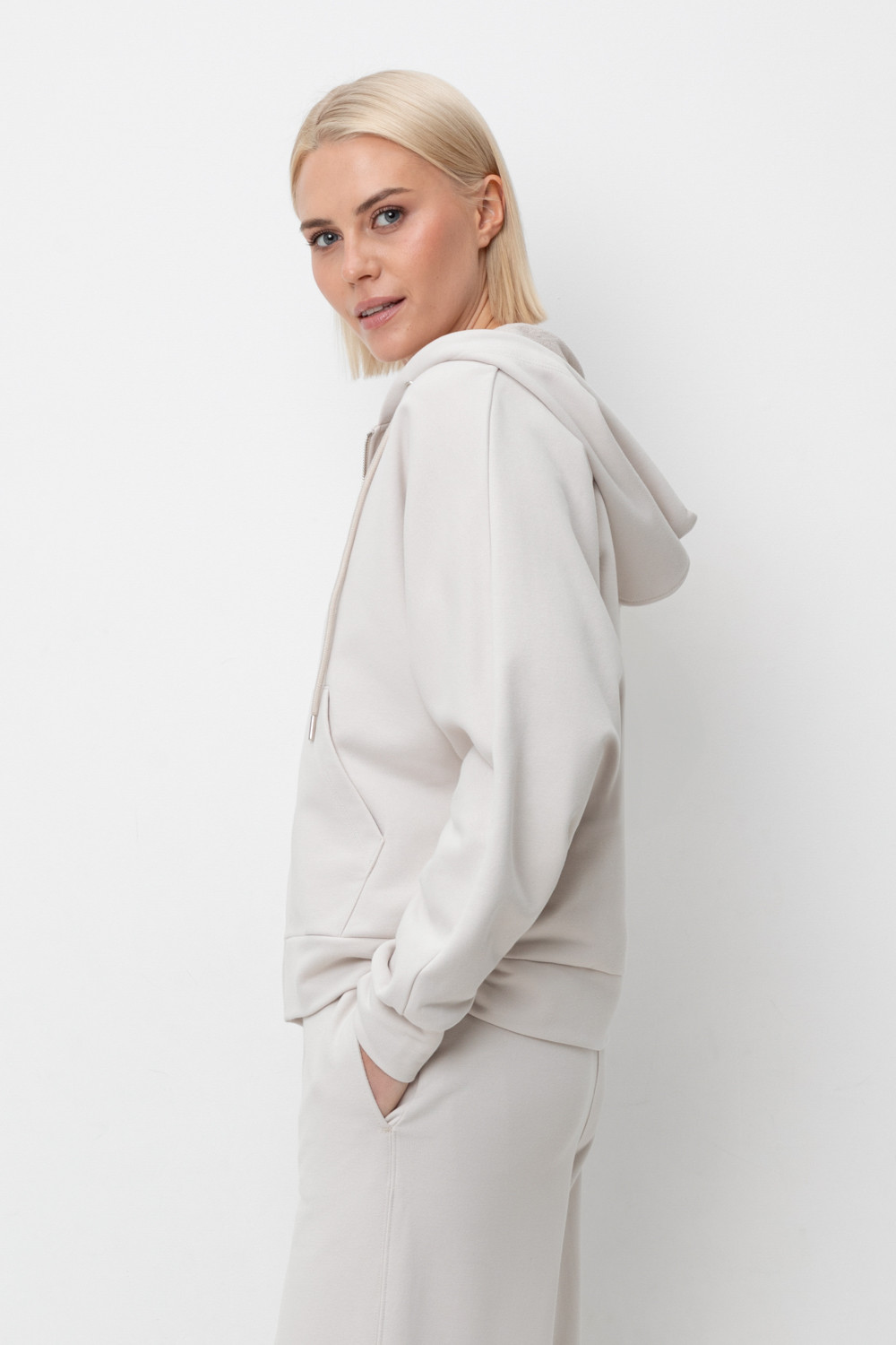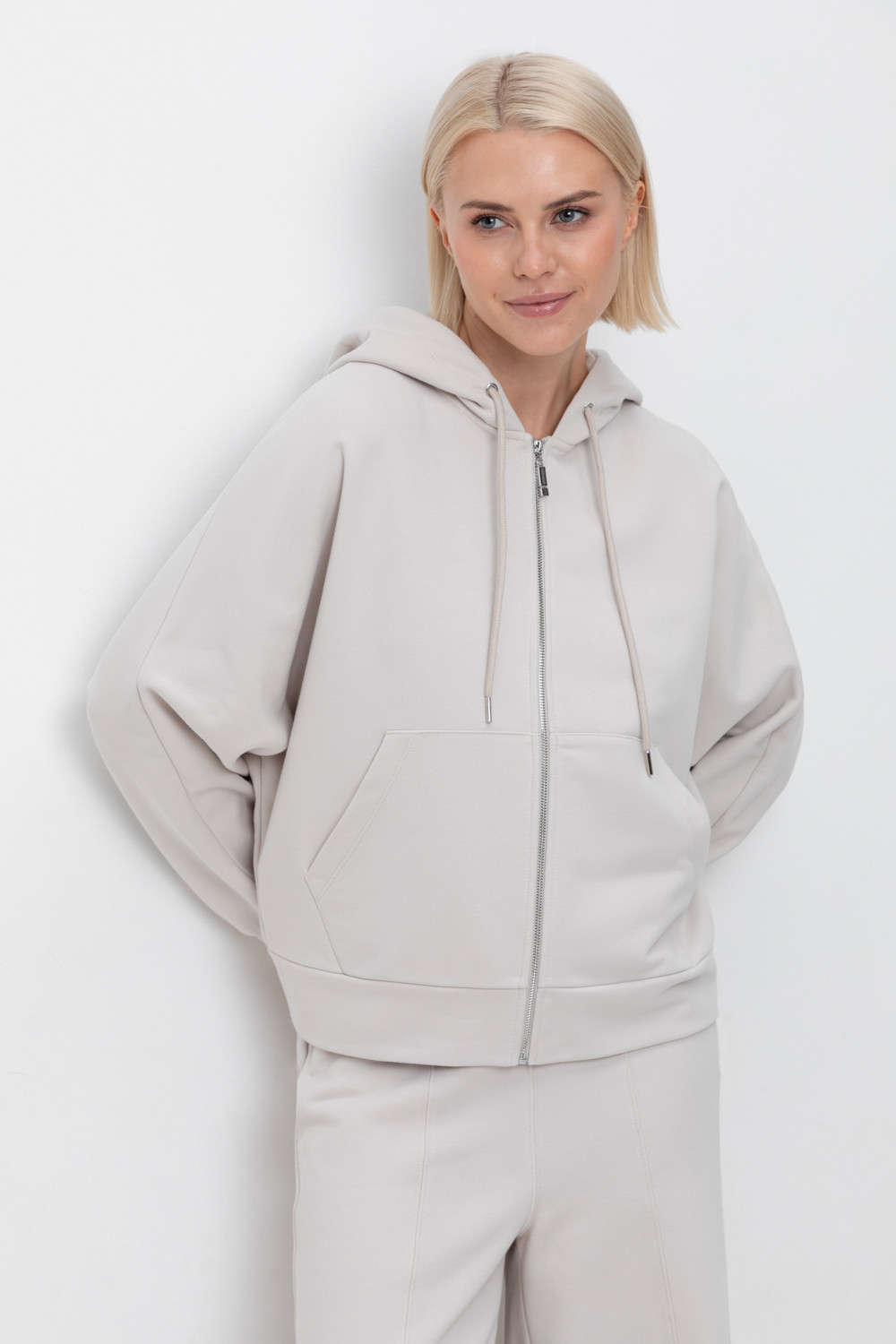 Объемная толстовка на молнии из мягкого трикотажного футера. Наличие специальных обработок полотна придало изделию мягкость и шелковистость.