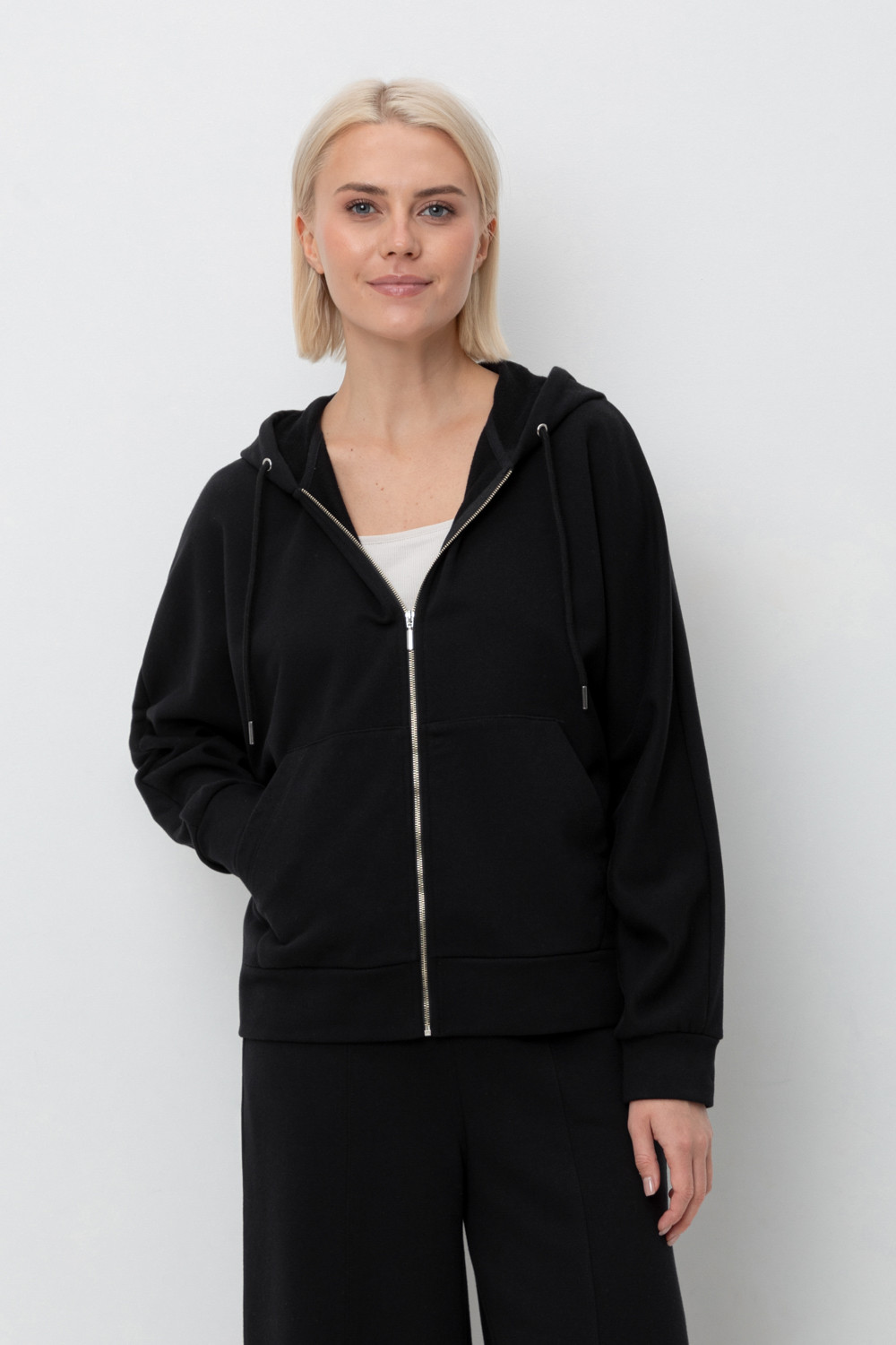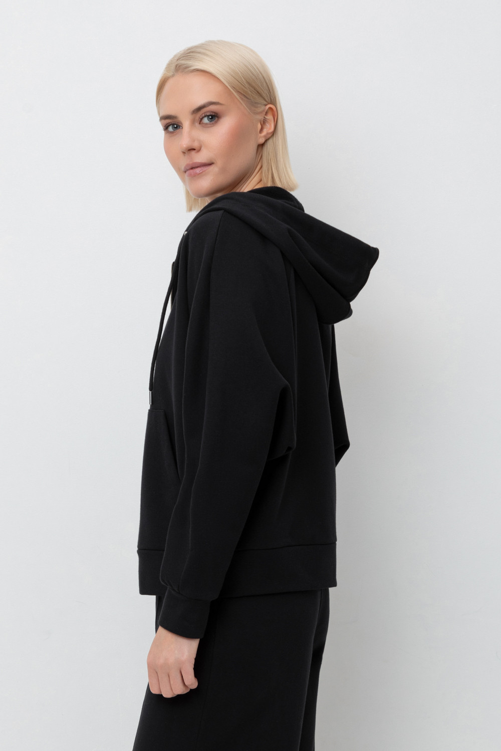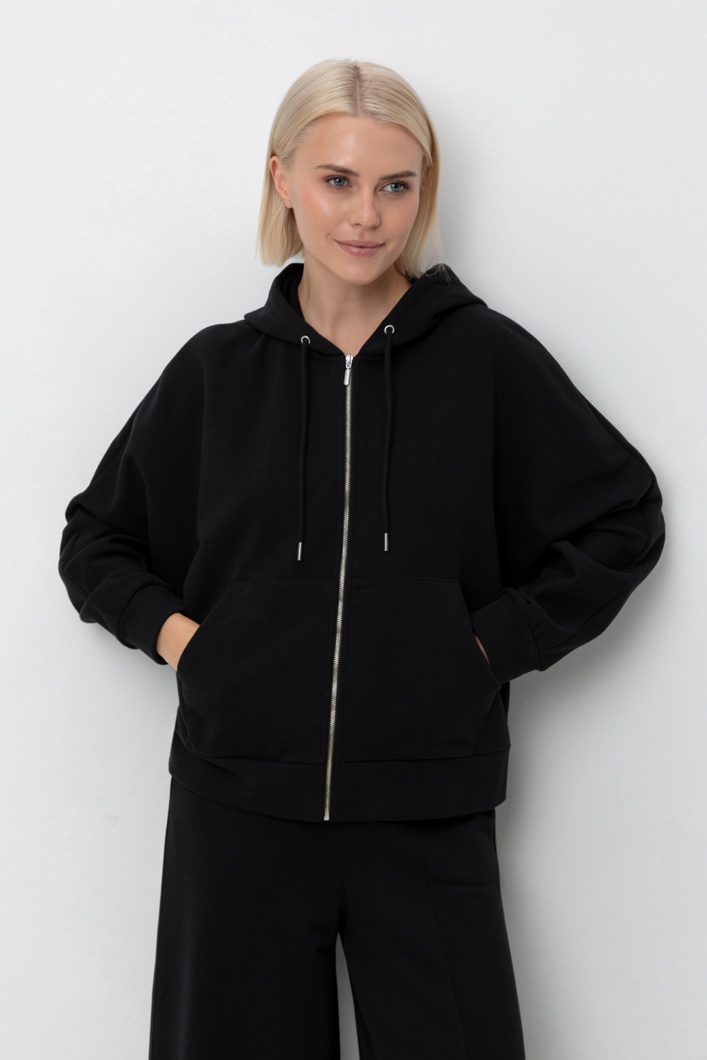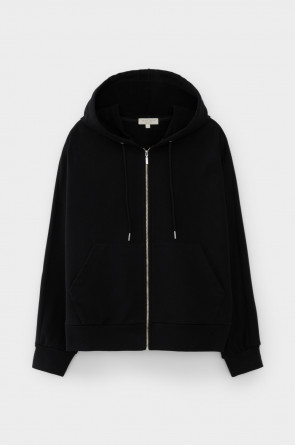Объемная толстовка на молнии из мягкого трикотажного футера. Наличие специальных обработок полотна придало изделию мягкость и шелковистость.