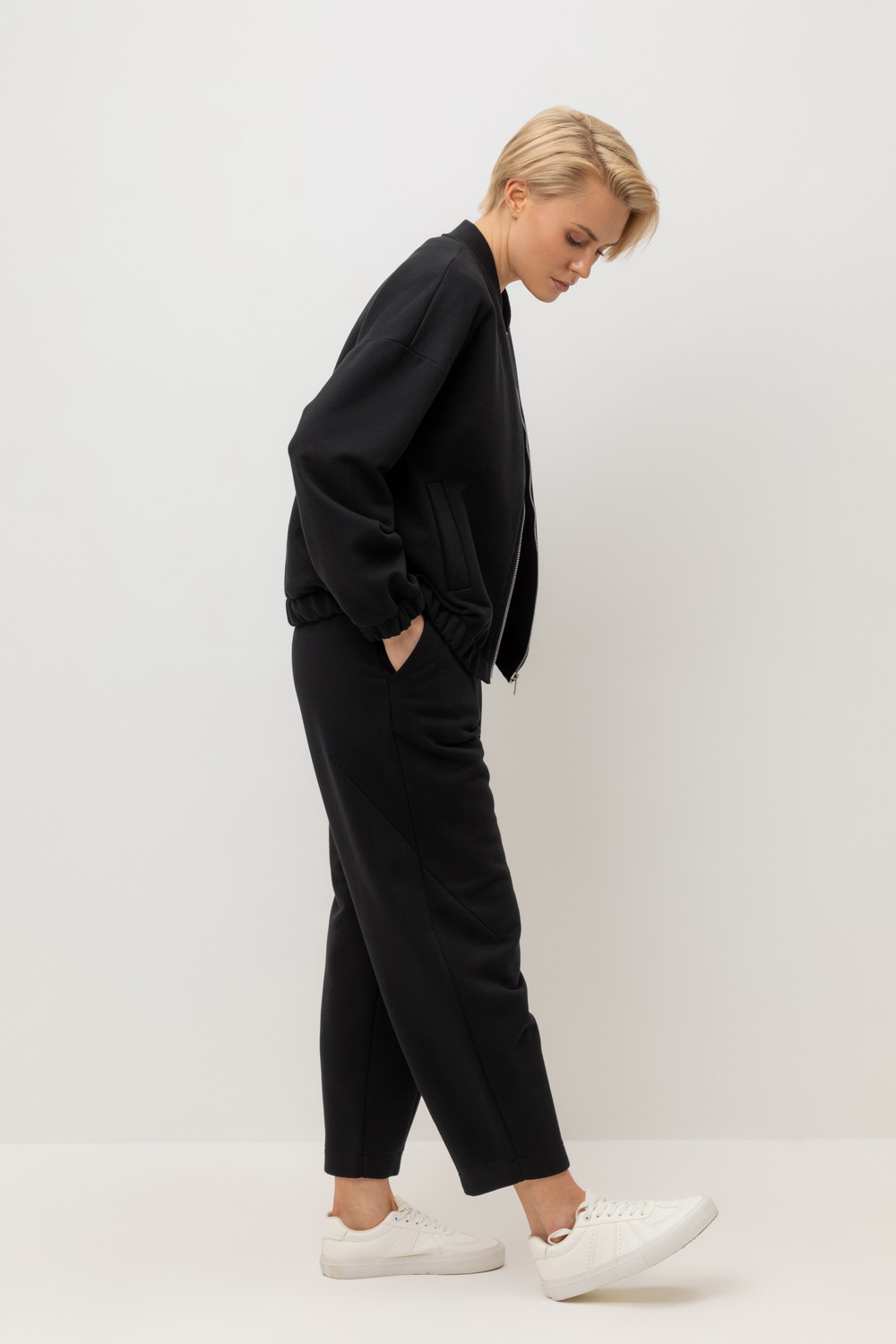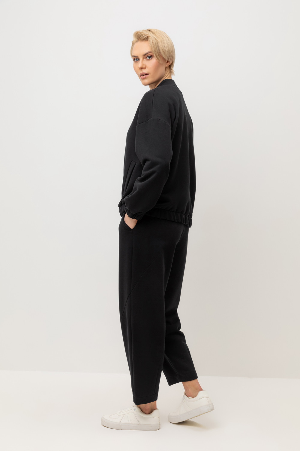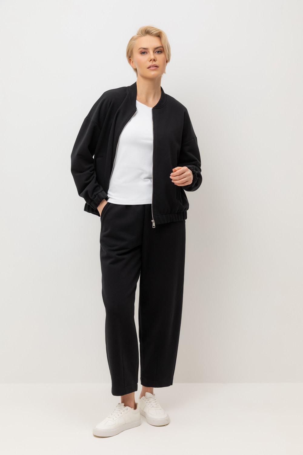 Куртка, выполненная из петельчатого футера трехнитки, отличается особой текстурой и комфортом. За счет фактуры переплетения и специальных обработок сохраняет силуэт и форму, что позволяет сочетать его как с юбкой, так и с брюками. Хлопок в составе добавит комфорта при носке.