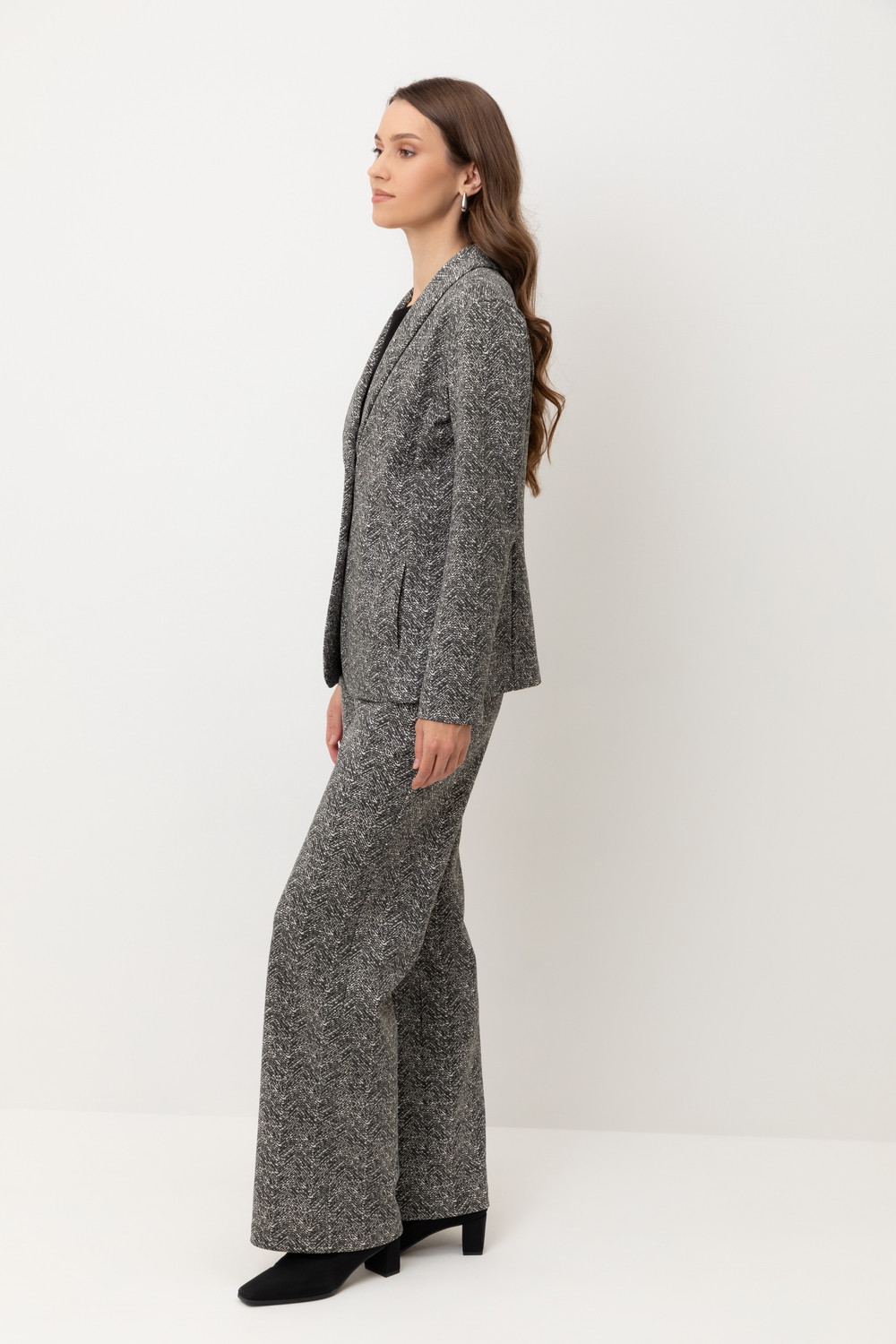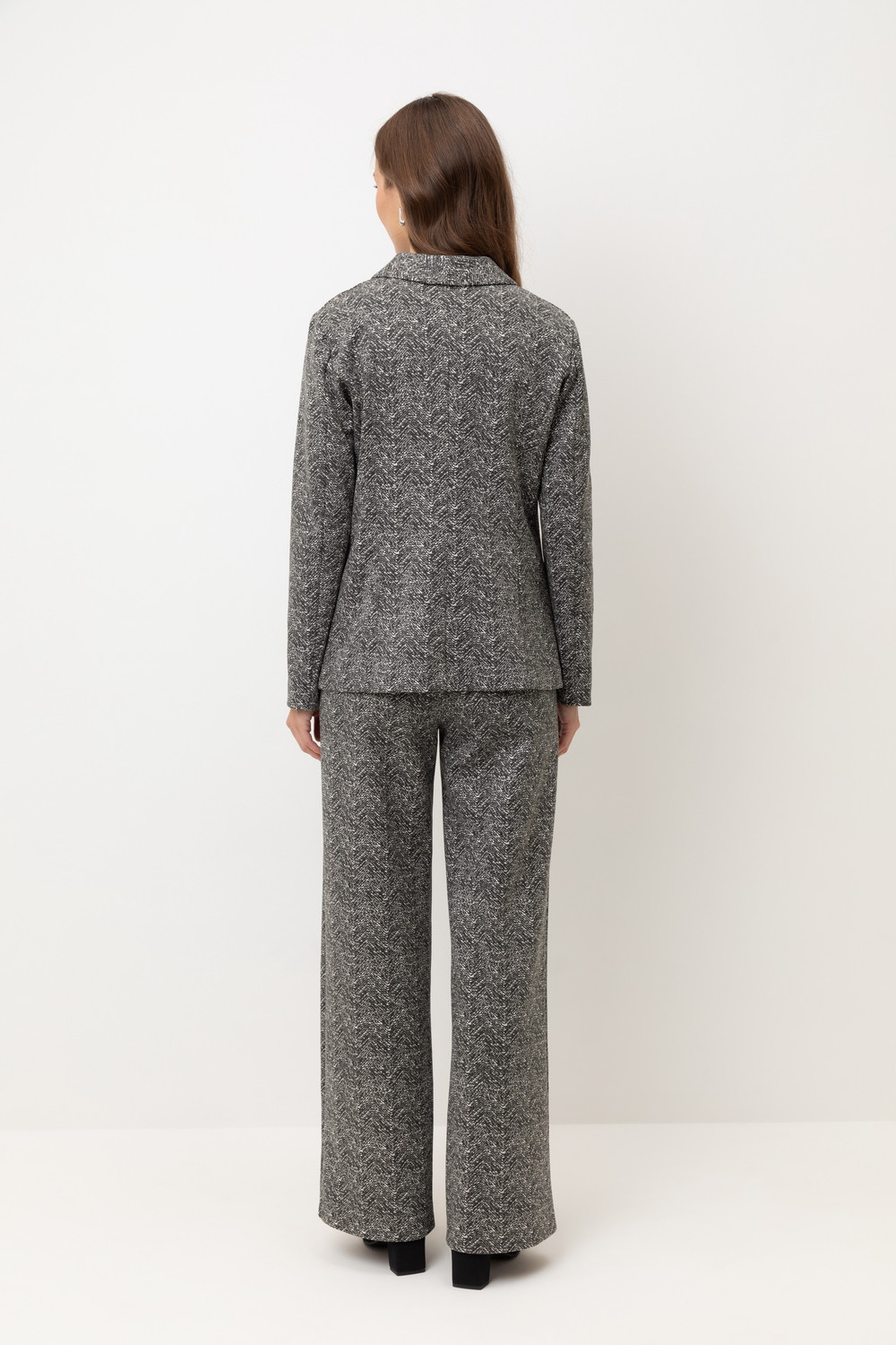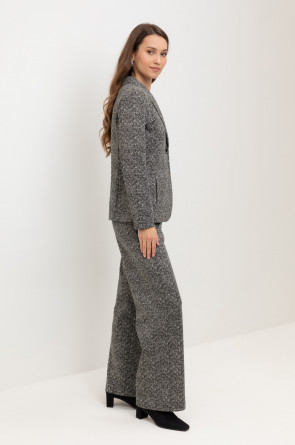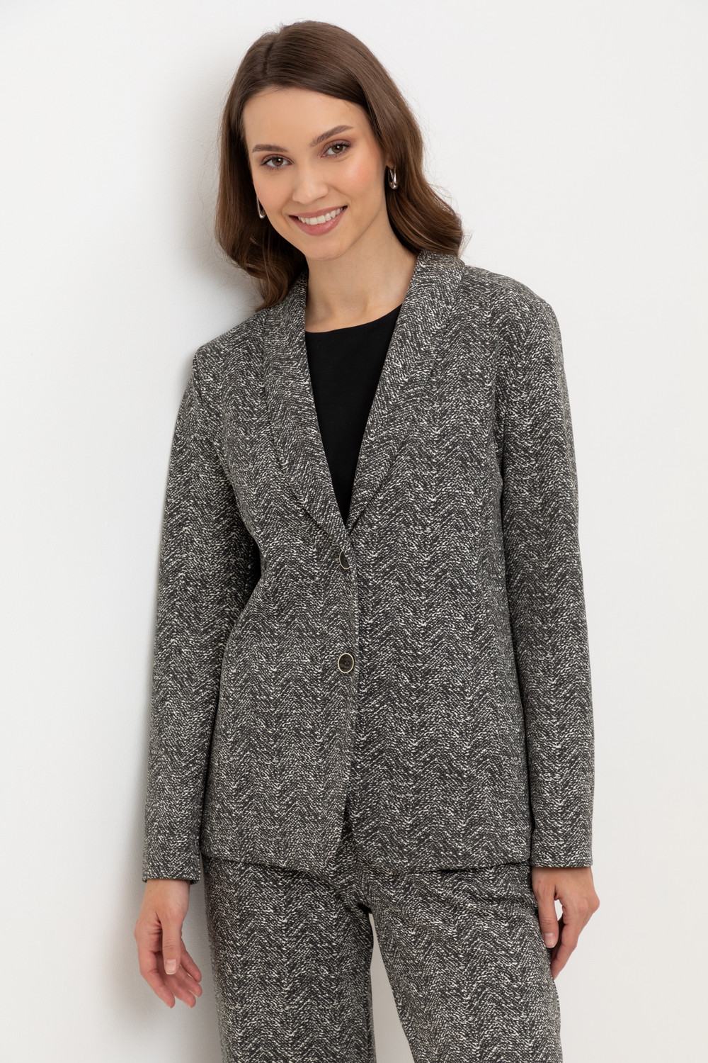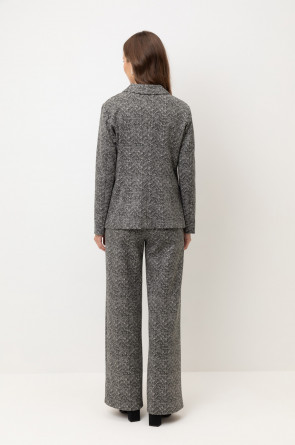 Приталенный пиджак изготовлен из высококачественного трикотажного полотна DOUBLE FACE. Обработка силиконом придает ему легкость и шелковистую текстуру. Благодаря уникальному переплетению и специальным методам обработки, он сохраняет свой силуэт и форму, что позволяет легко комбинировать его как с юбками, так и с брюками.
