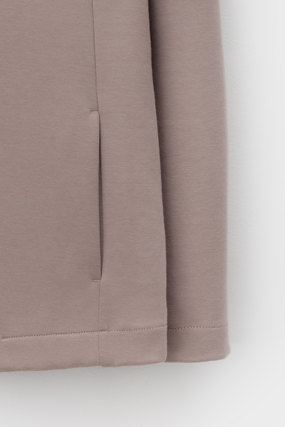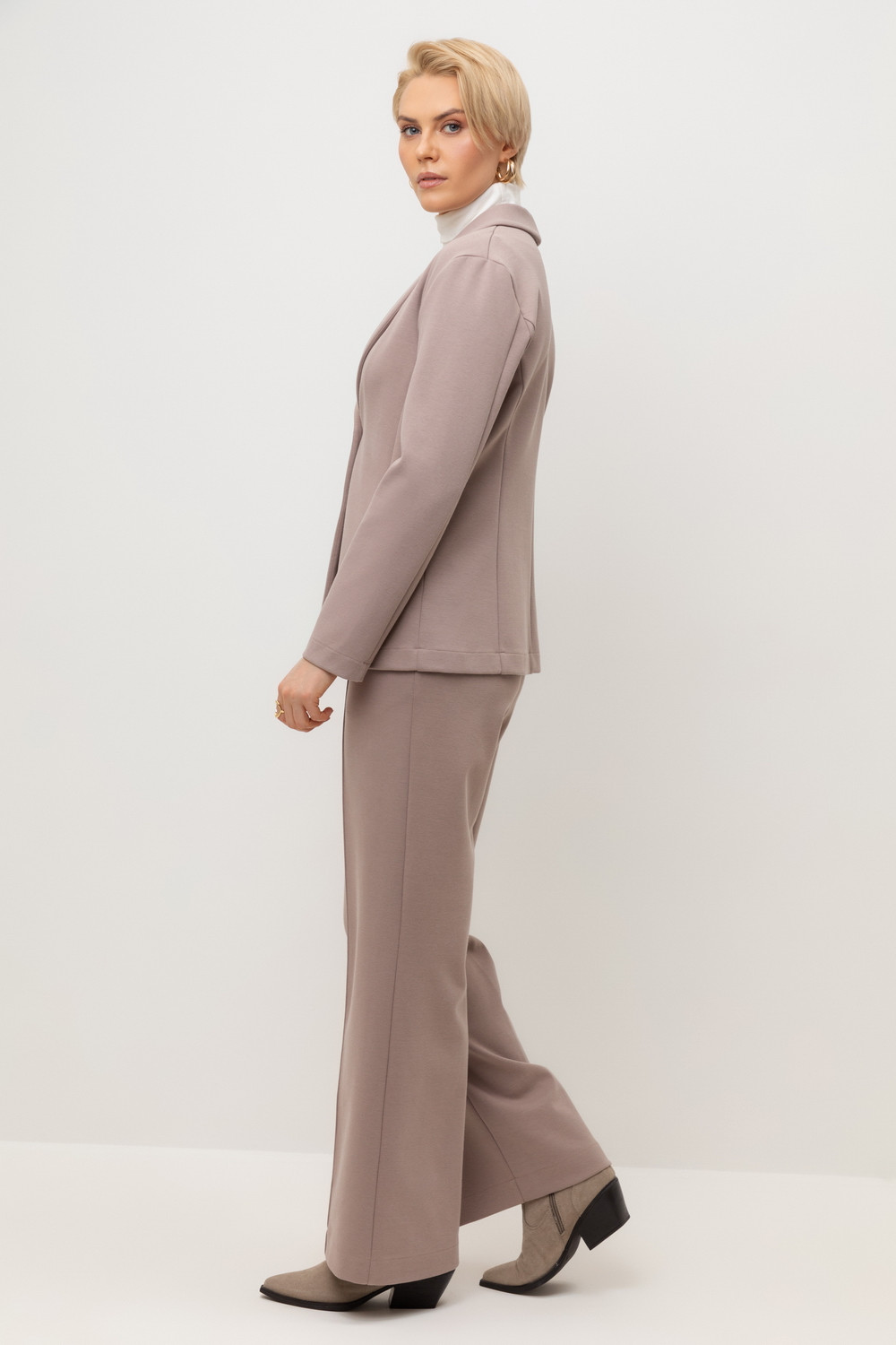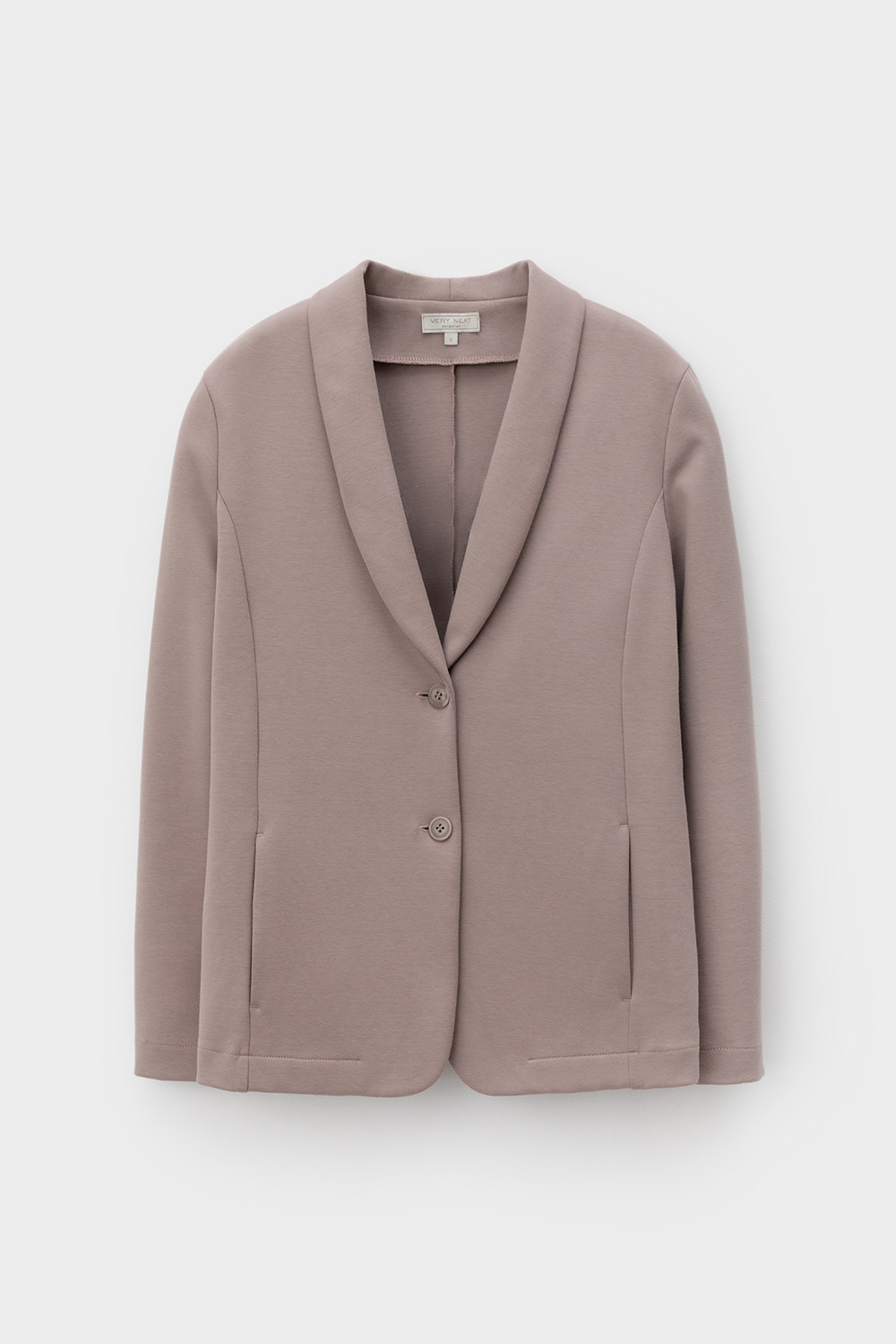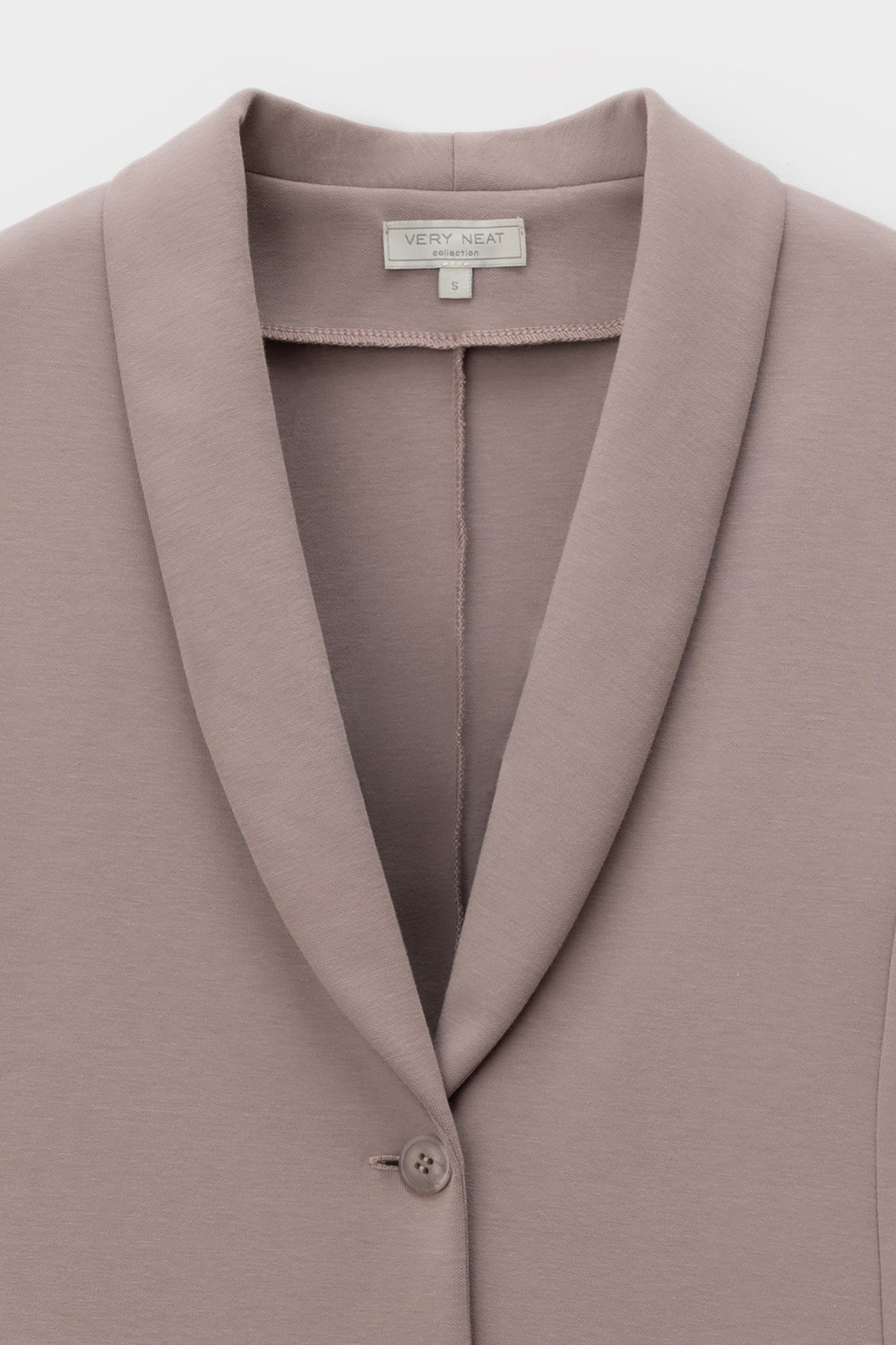 Приталенный пиджак изготовлен из высококачественного трикотажного полотна DOUBLE FACE. Трикотаж прошел специальную каучуковую обработку, что придает пиджаку легкость и шелковистую текстуру. Благодаря уникальному переплетению и специальным методам обработки, он сохраняет свой силуэт и форму, что позволяет легко комбинировать его как с юбками, так и с брюками.