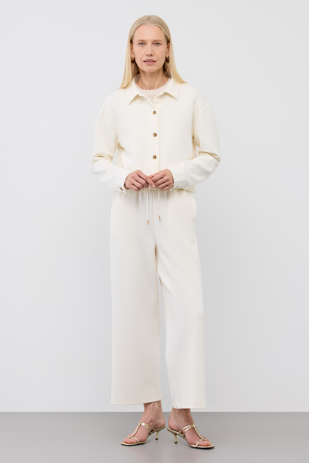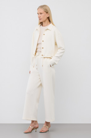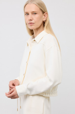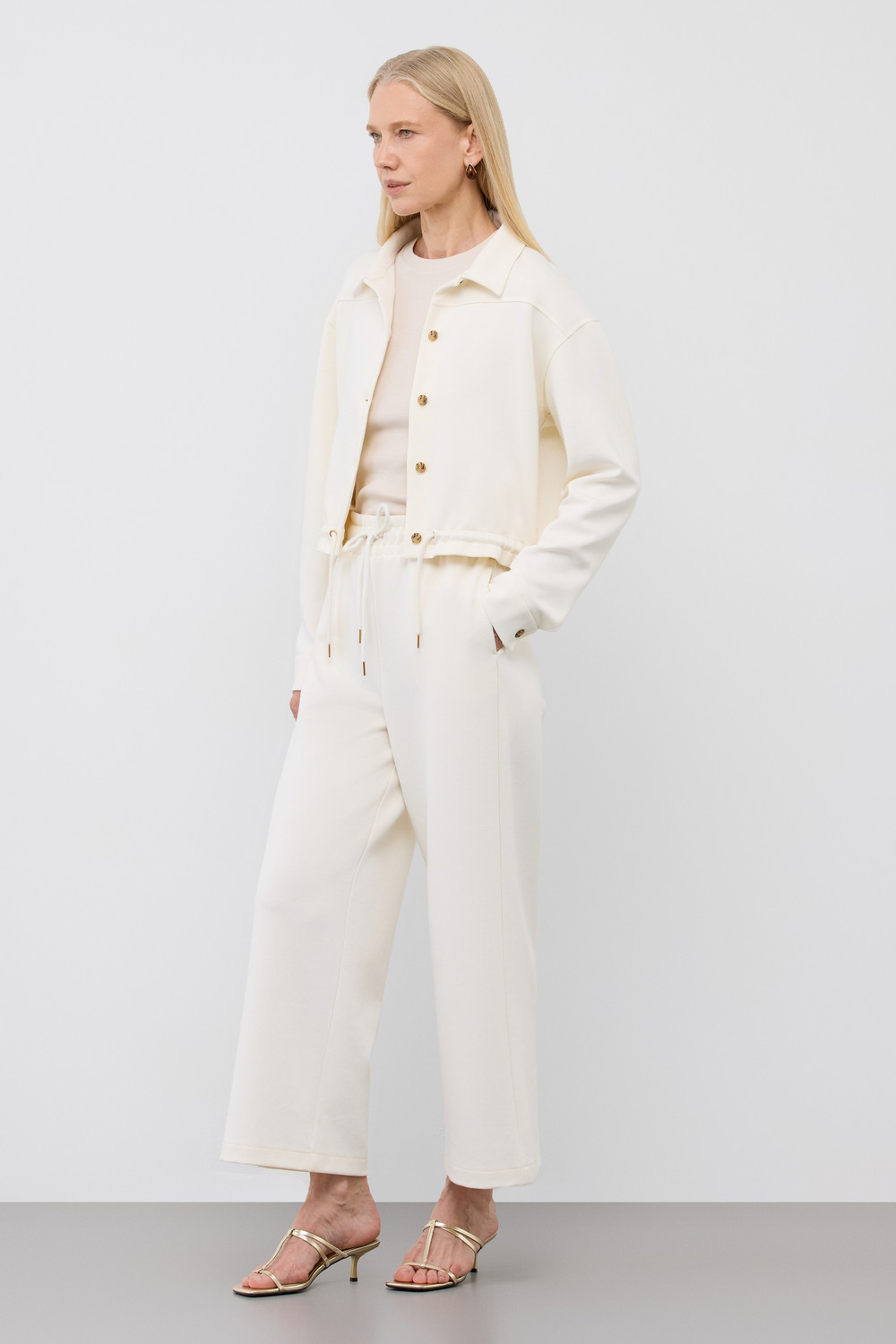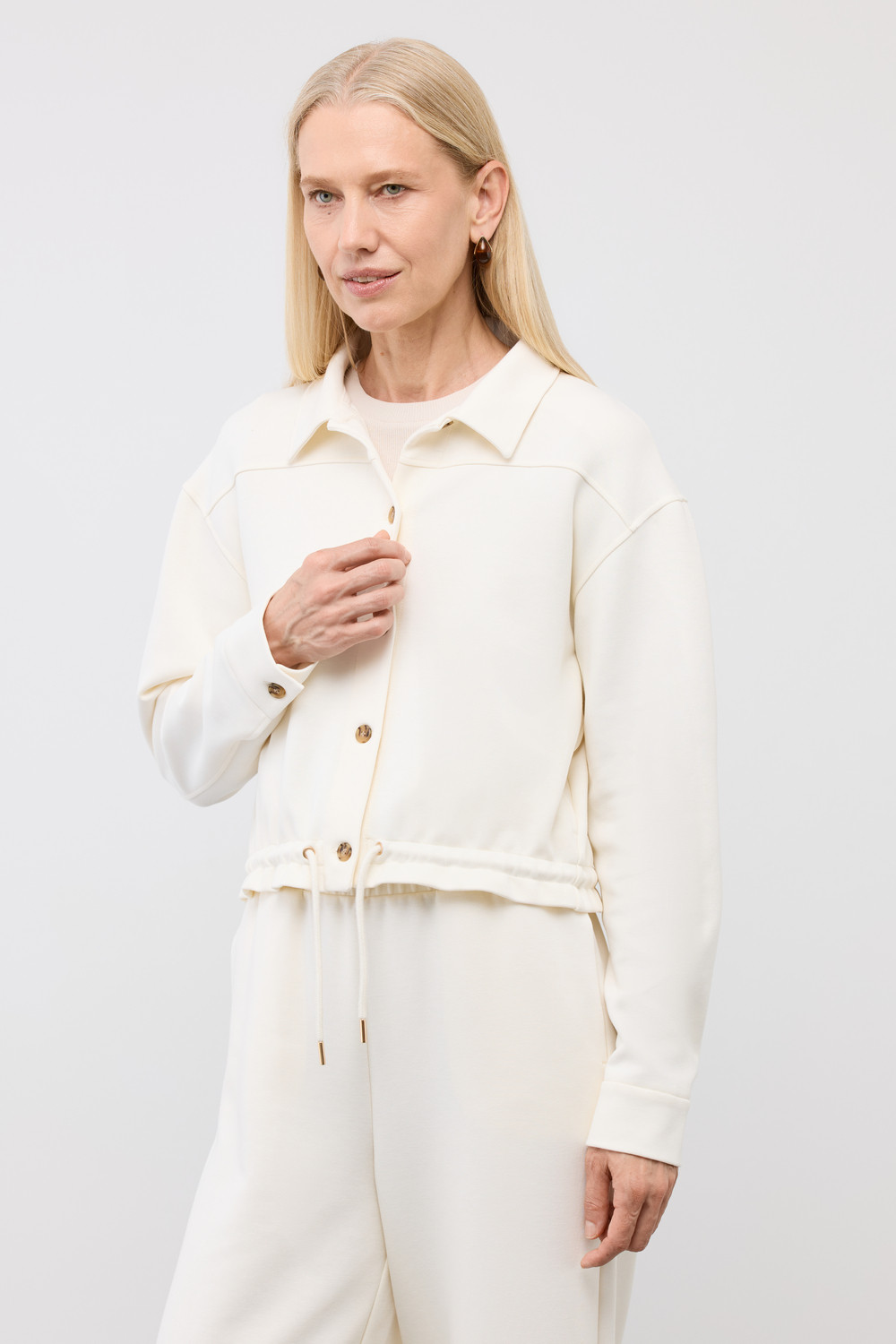 Куртка из премиального трикотажа на пуговицах. Изделие дополнено шнурами на поясе для создания классических или же более объемных образов. Куртка сочетает в себе актуальный крой и премиальные материалы, позволяя выбирать его для различных стилей.