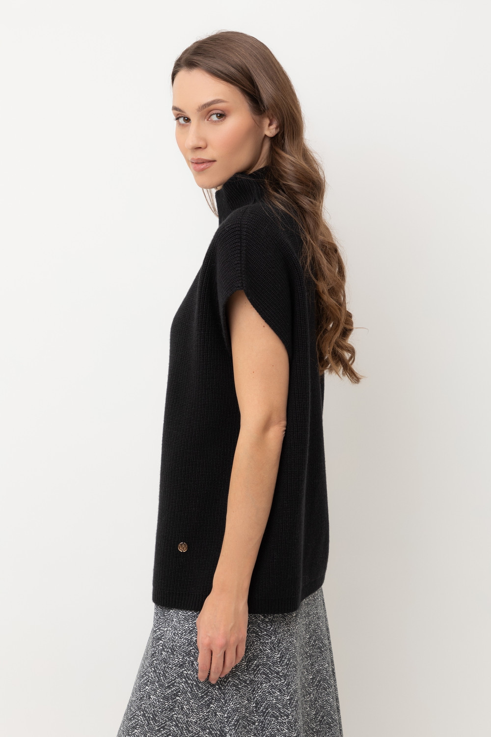 Жилет, изготовленный из высококачественной пряжи. Уникальное сочетание шерсти и акрила дарит ощущение уюта, приятно прилегает к телу, является гипоаллергенным и отлично сохраняет форму. Рельефная текстура придает жилету современный вид, идеально сочетающийся с различными стилями одежды.
