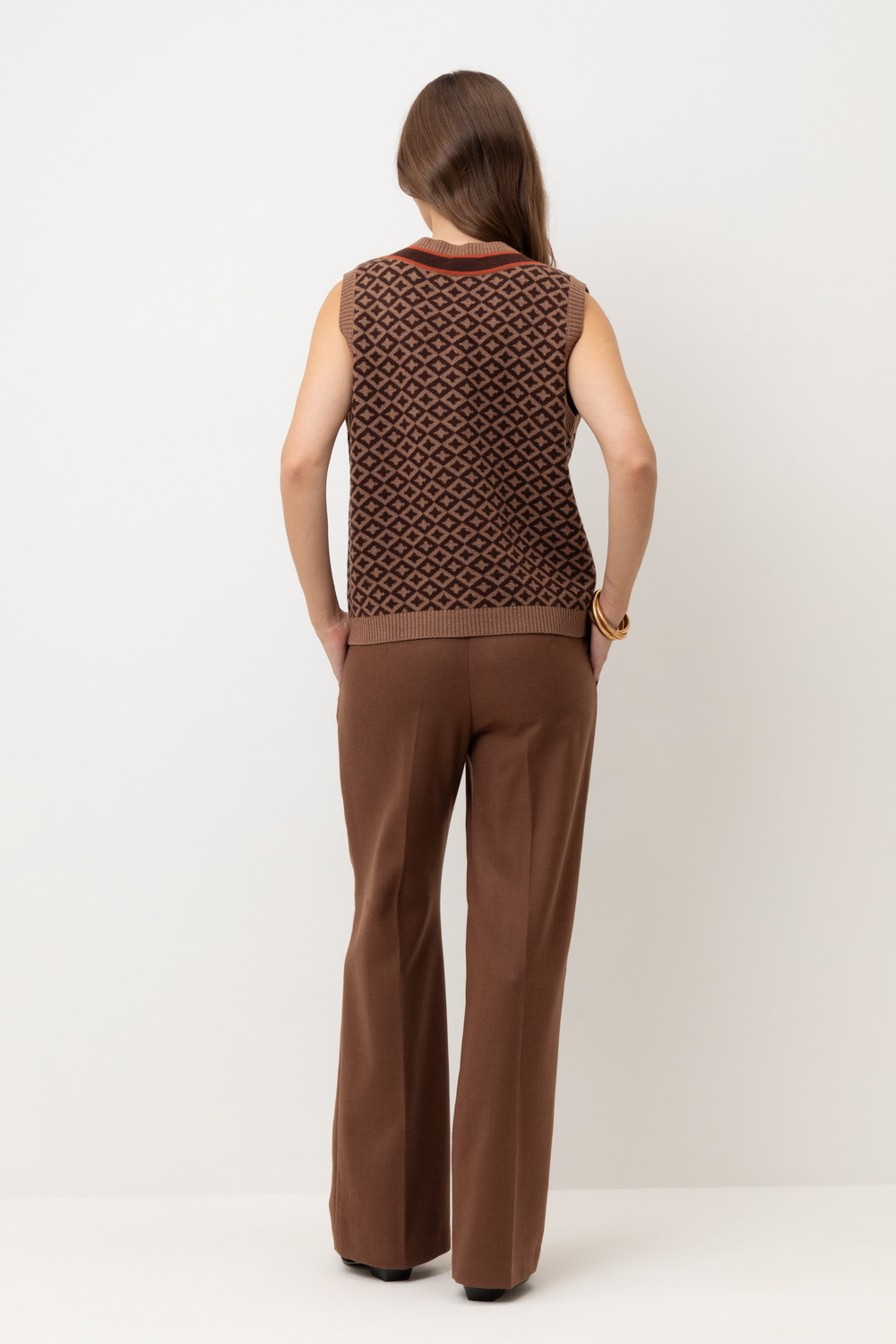 Жилет в кантри-стиле, изготовленный из высококачественной пряжи с применением передовой технологии смешанных волокон. Изысканное сочетание шерсти и акрила создает непревзойденный комфорт: модель деликатно подчеркивает силуэт, обеспечивает нежное прикосновение к коже и сохраняет безупречный внешний вид.