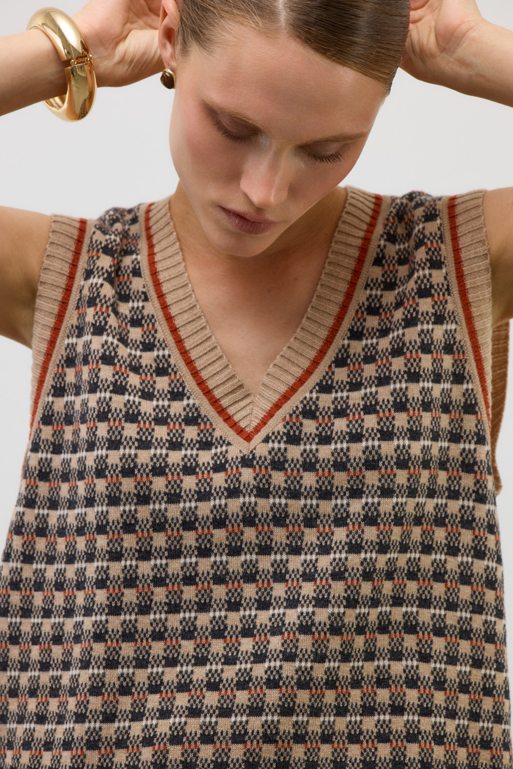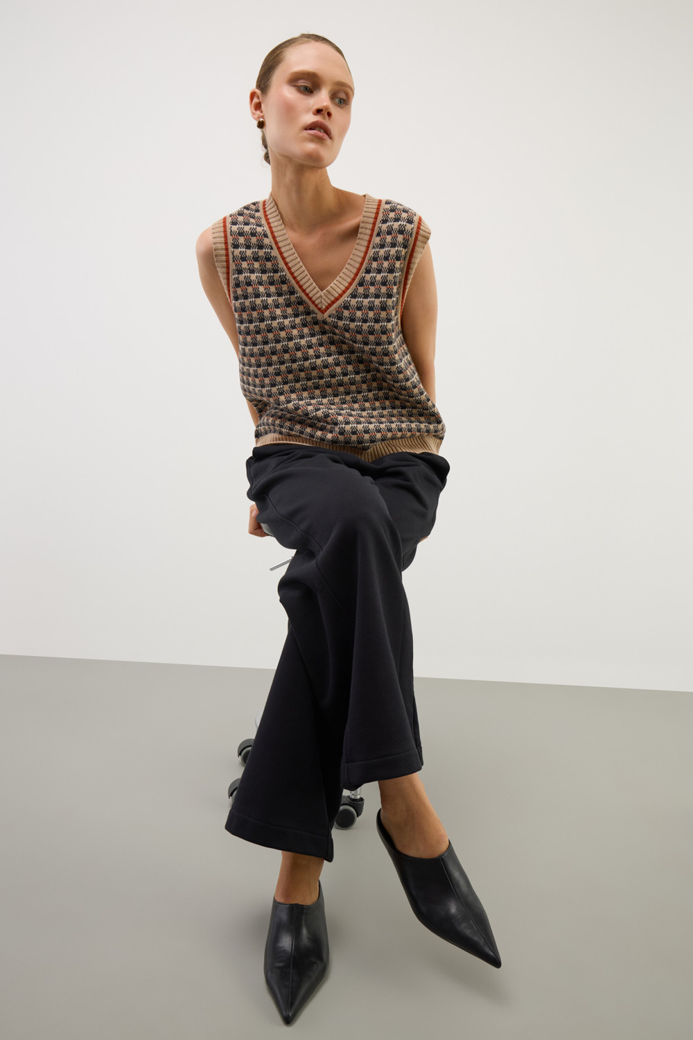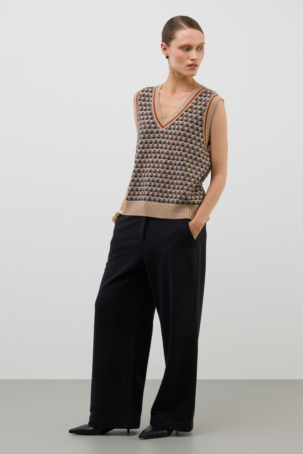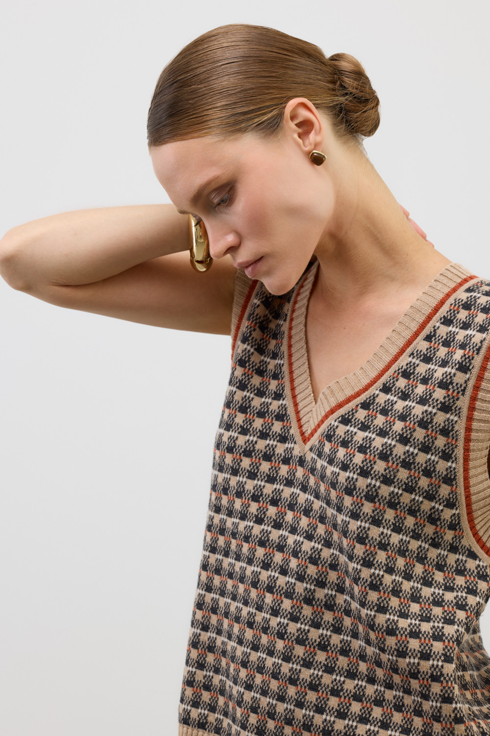 Жилет в кантри-стиле, изготовленный из высококачественной пряжи с применением передовой технологии смешанных волокон. Изысканное сочетание шерсти и акрила создает непревзойденный комфорт: модель деликатно подчеркивает силуэт, обеспечивает нежное прикосновение к коже и сохраняет безупречный внешний вид.
