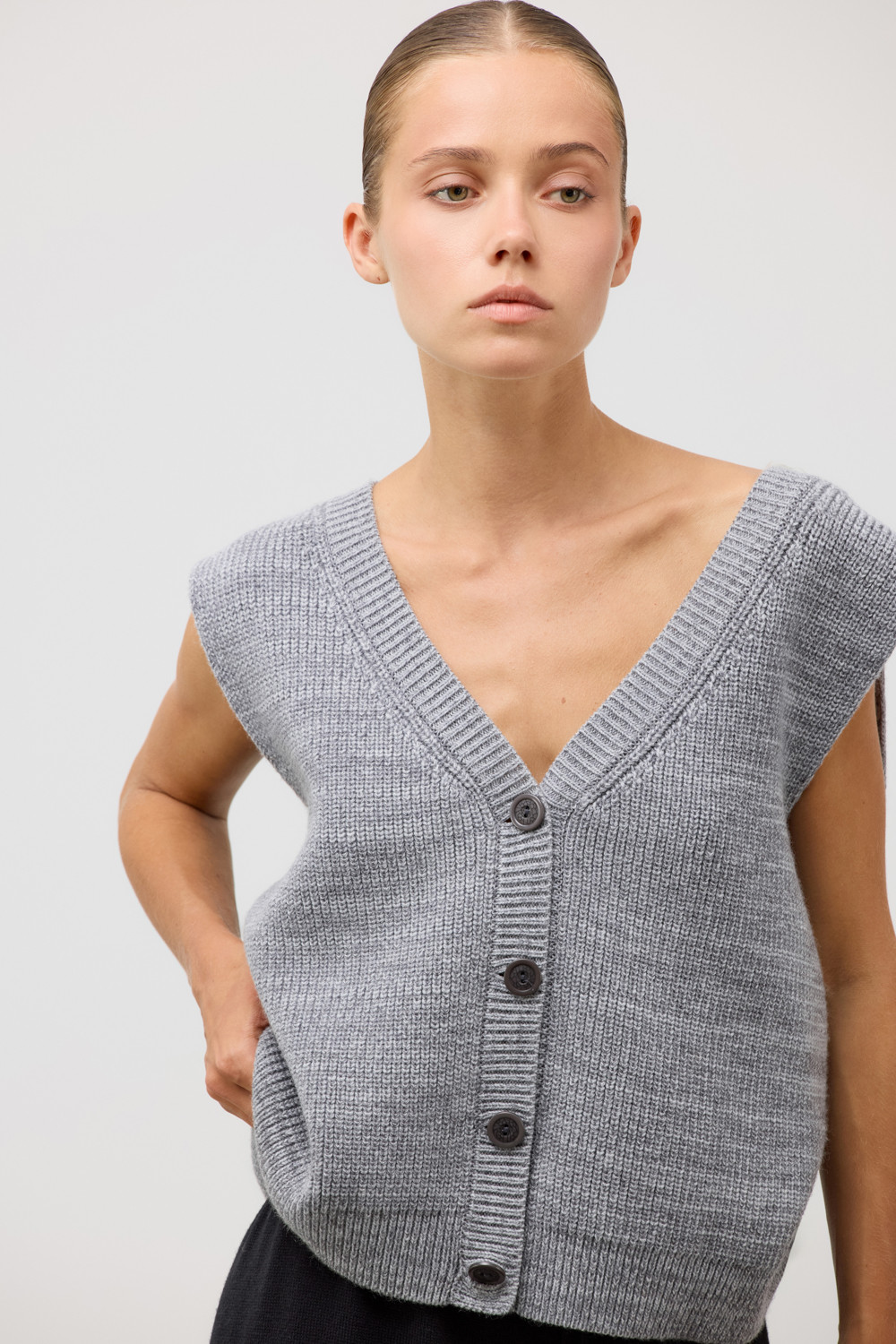 Жилет, созданный из высококачественных материалов, представляет собой гармоничное сочетание натуральной шерсти и современного акрила, что обеспечивает идеальный баланс между теплотой, мягкостью и долговечностью. Такой состав делает изделие легким, но при этом удивительно теплым. Каждая деталь тщательно продумана: аккуратные швы и прочные пуговицы придают жилету уникальность.