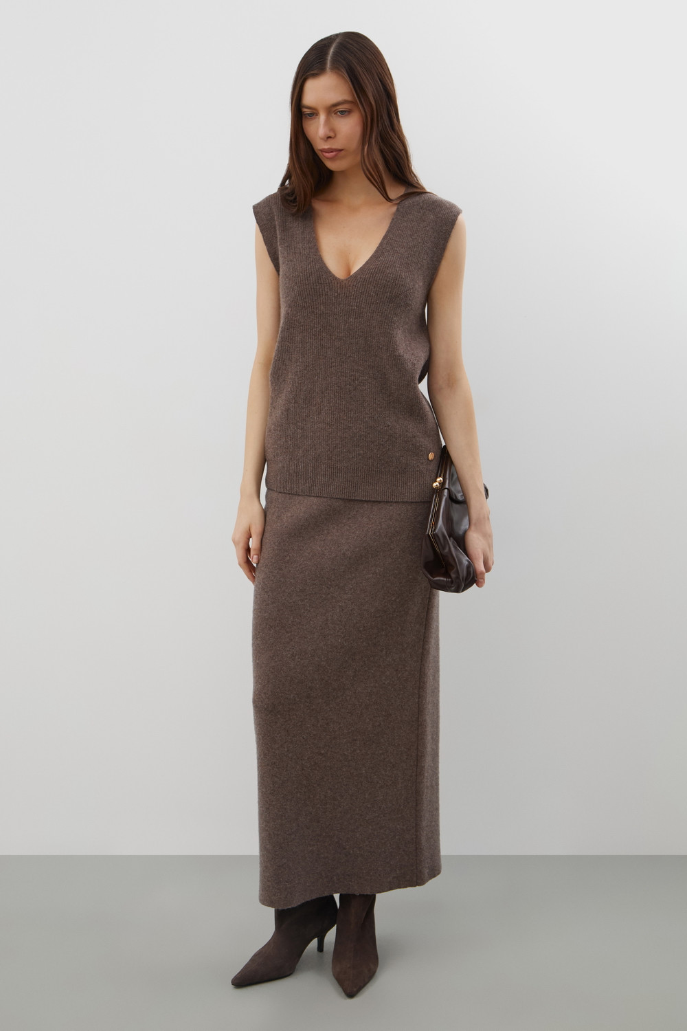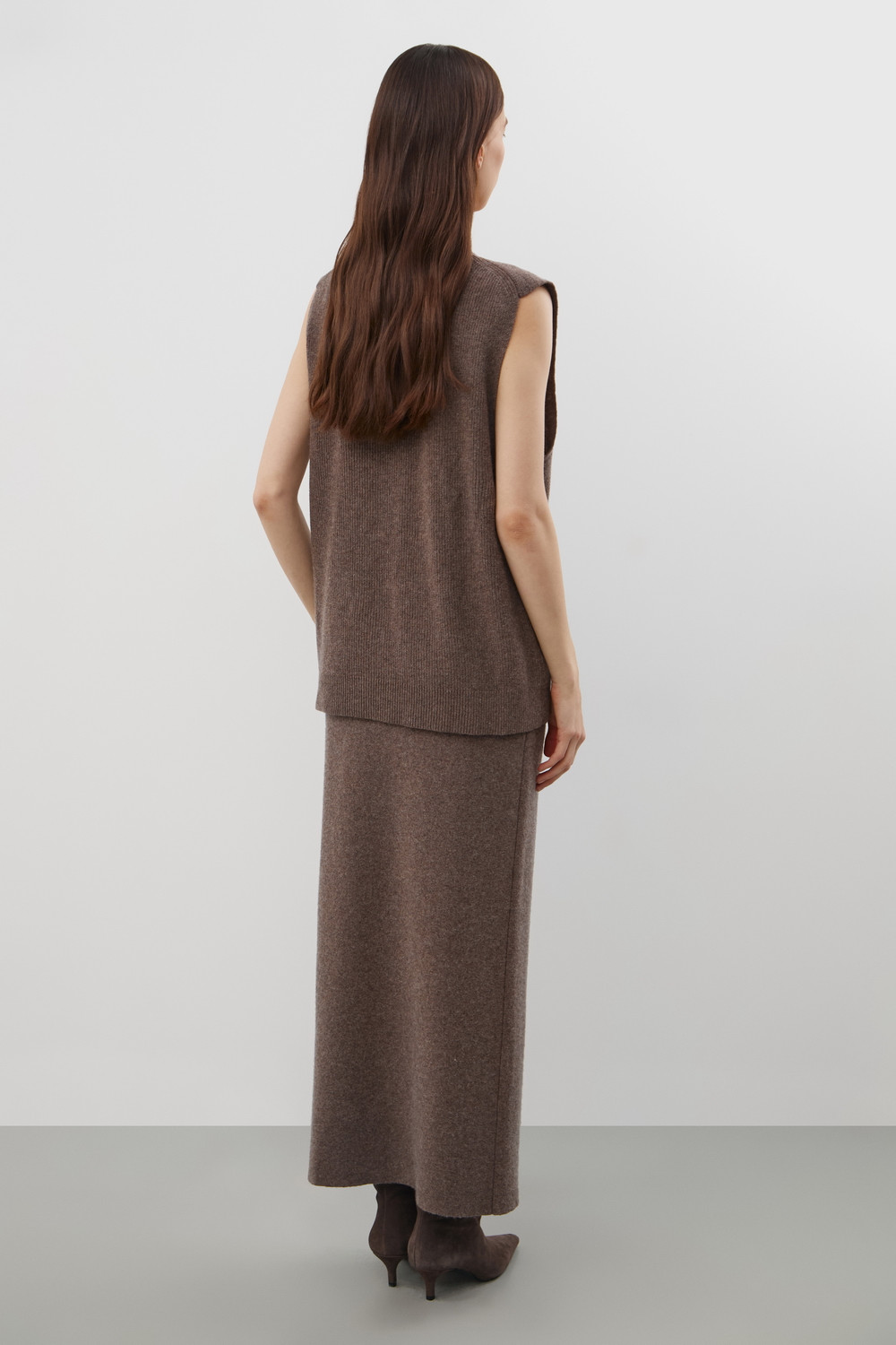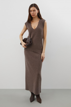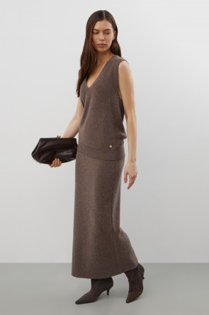 Жилет, изготовленный из высококачественной пряжи с применением передовой технологии смешанных волокон. Изысканное сочетание шерсти мериноса, кашемира и вискозы создает непревзойденный комфорт: модель деликатно подчеркивает силуэт, обеспечивает нежное прикосновение к коже и сохраняет безупречный внешний вид.