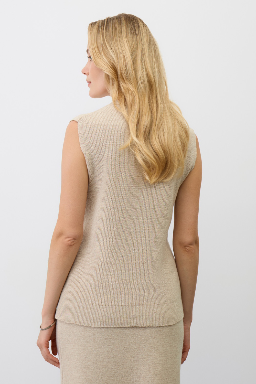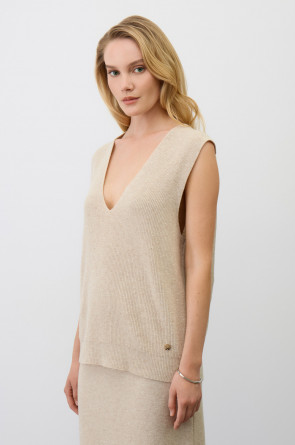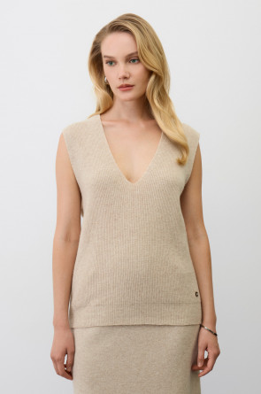 Жилет, изготовленный из высококачественной пряжи с применением передовой технологии смешанных волокон. Изысканное сочетание шерсти мериноса, кашемира и вискозы создает непревзойденный комфорт: модель деликатно подчеркивает силуэт, обеспечивает нежное прикосновение к коже и сохраняет безупречный внешний вид.