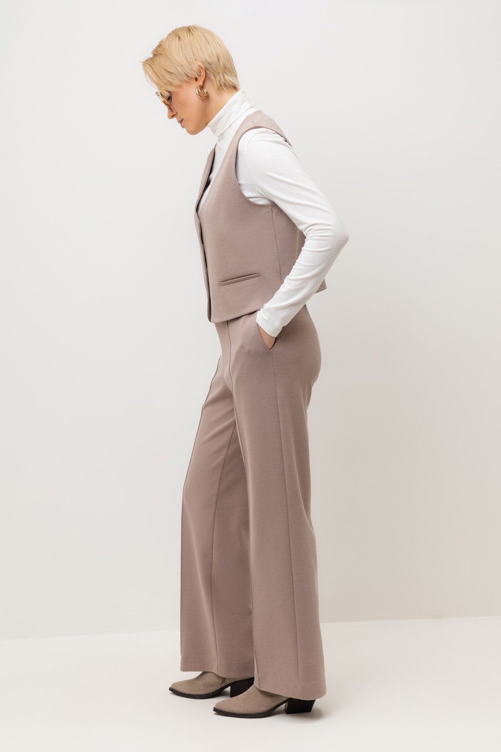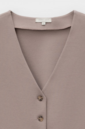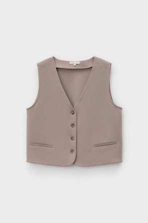 Классический жилет, изготовленный из высококачественного трикотажного полотна DOUBLE FACE. Ткань прошла инновационную силиконовую обработку. Благодаря этой технологии поверхность приобретает невероятно нежную, почти воздушную структуру с легким шелковистым блеском.